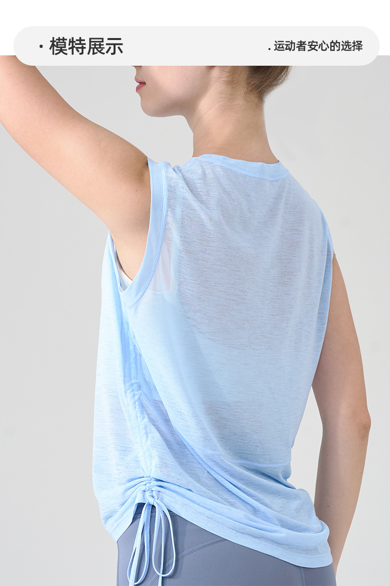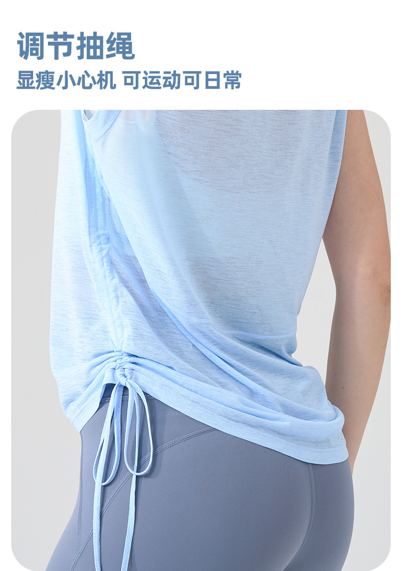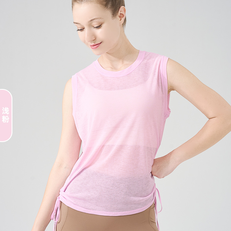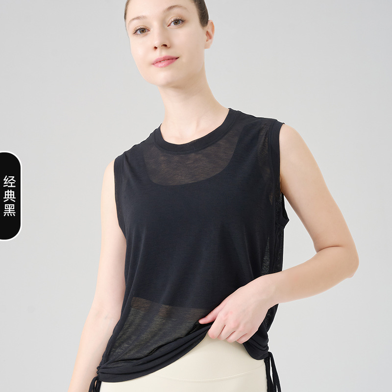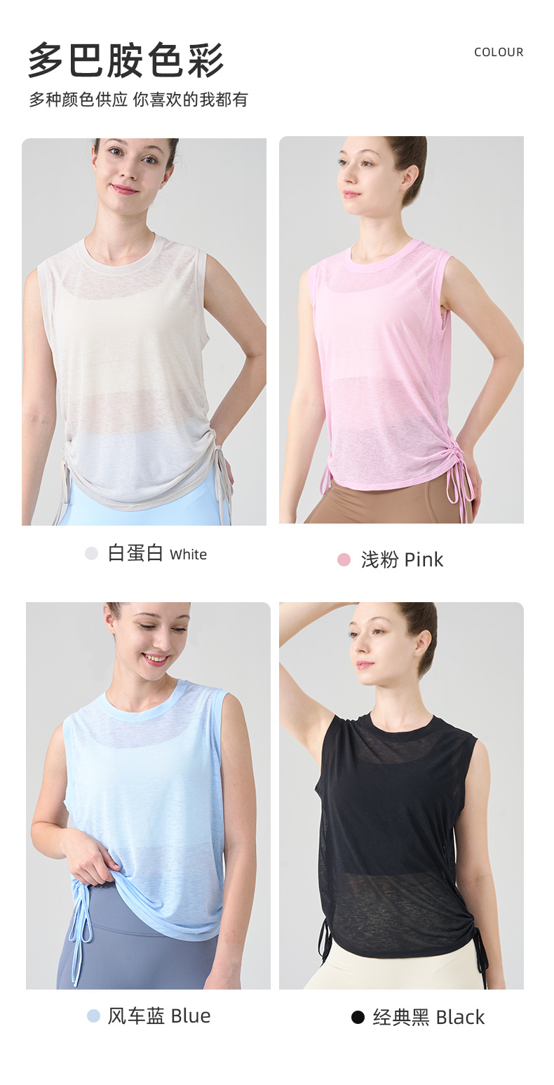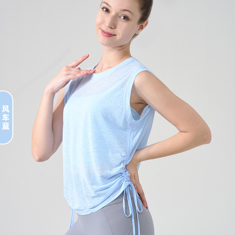 대나무 원사 요가 조끼 여성 여름 통기성 느슨한 풀오버 민소매 스포츠 탑 밑단 Drawstring 요가 커버 업