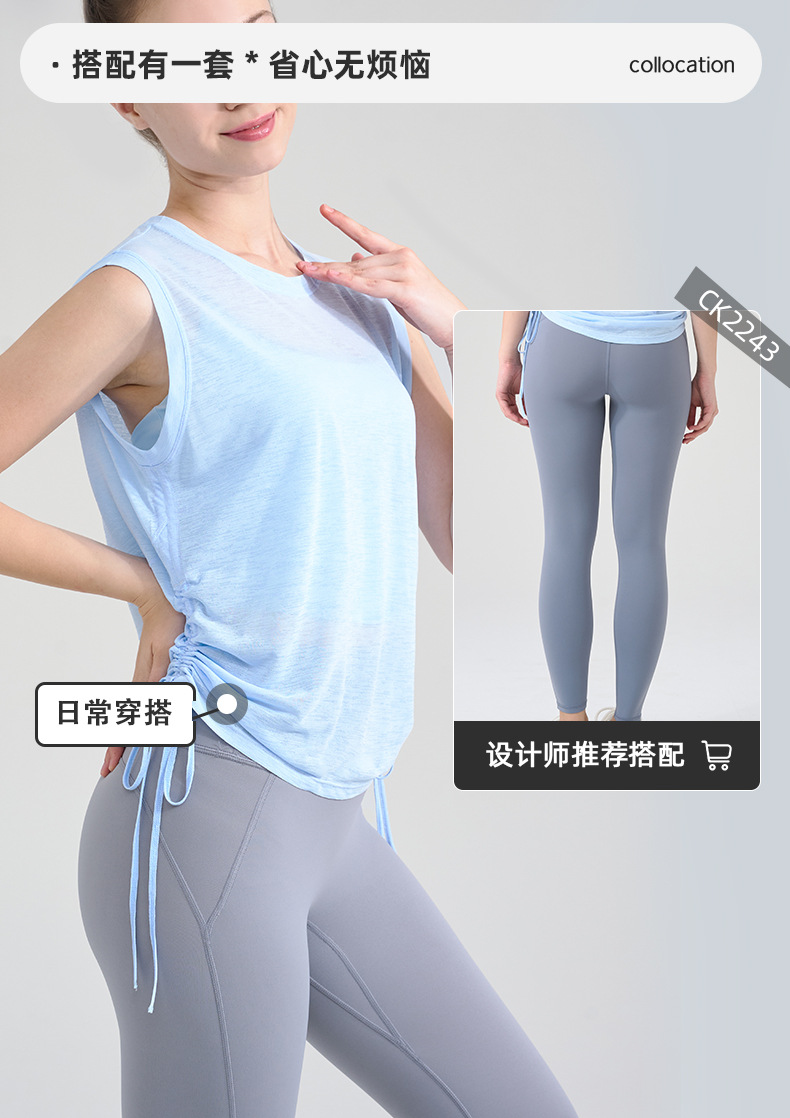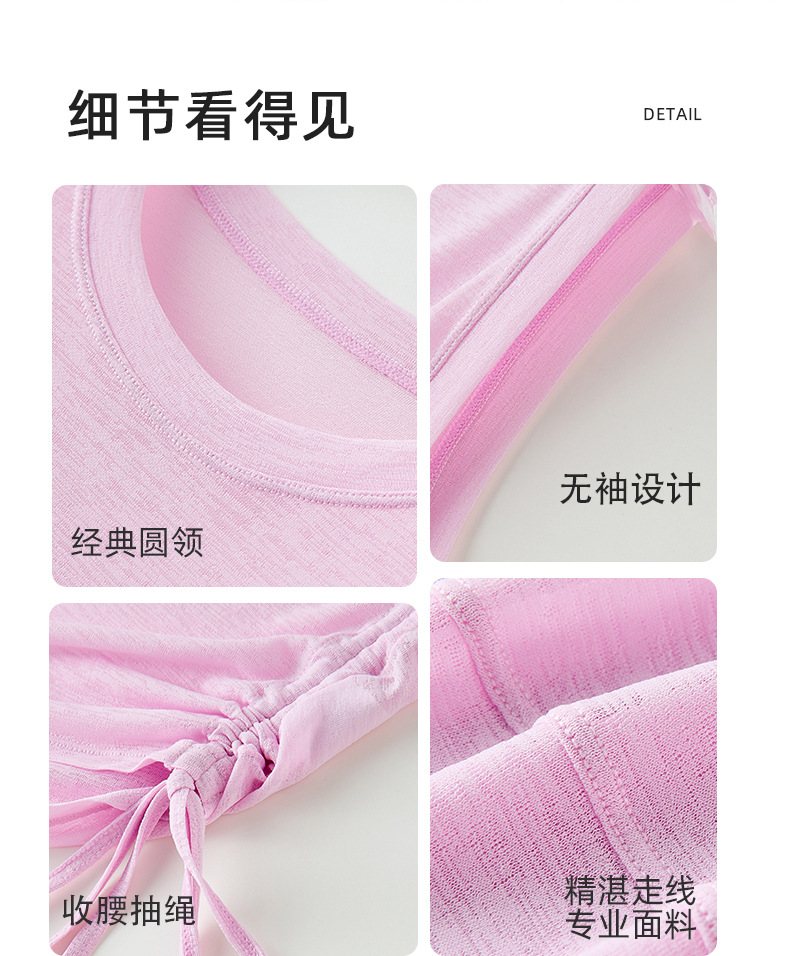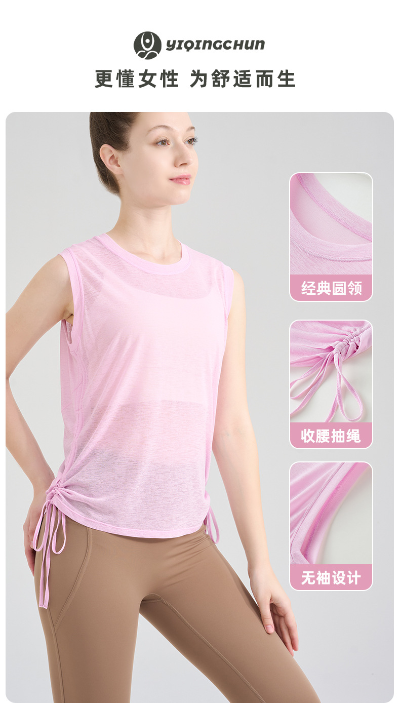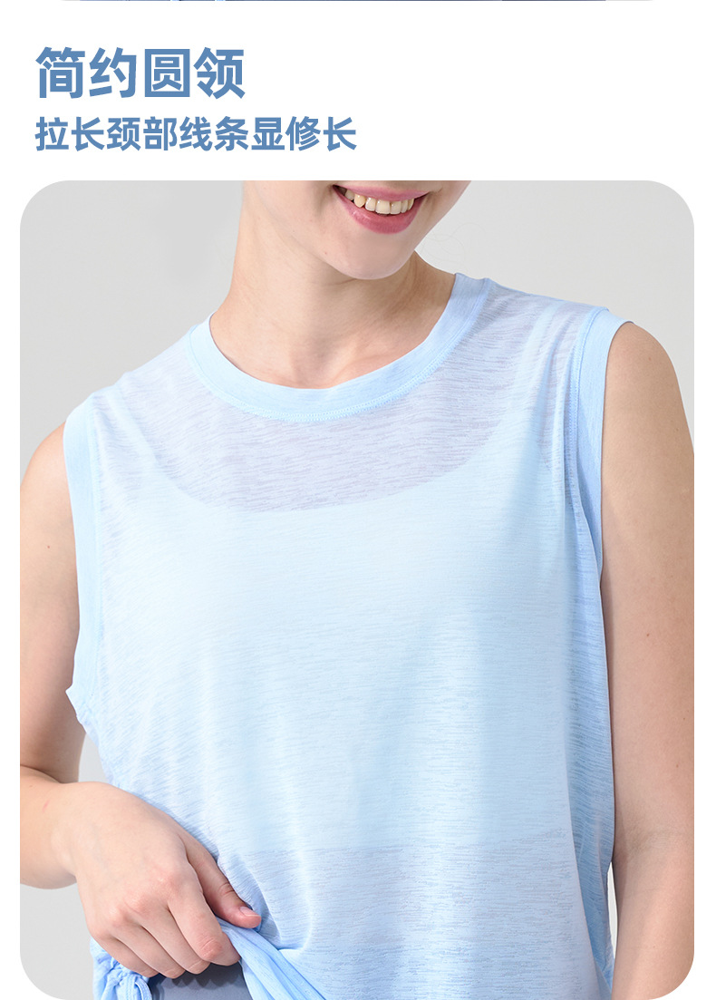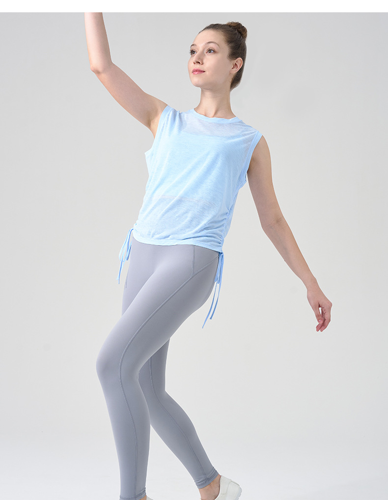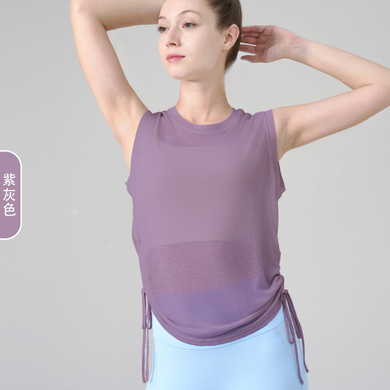 대나무 원사 요가 조끼 여성 여름 통기성 느슨한 풀오버 민소매 스포츠 탑 밑단 Drawstring 요가 커버 업