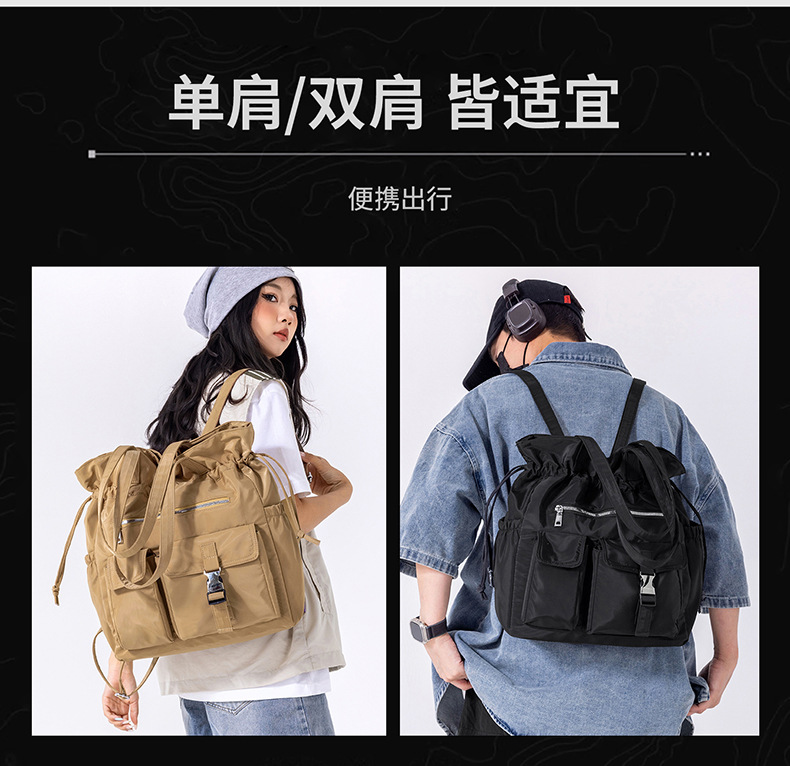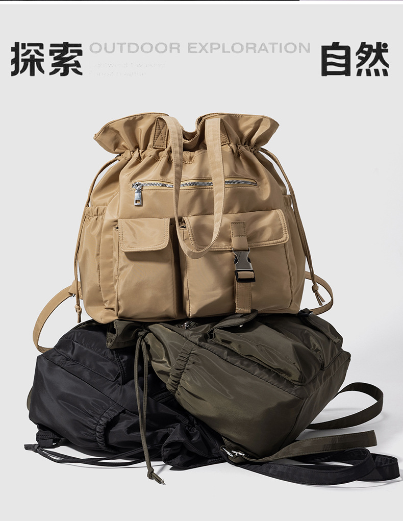 2025 새로운 다목적 단순 단색 유행 패션 스포츠 및 레저 배낭 Drawstring 나일론 배낭
