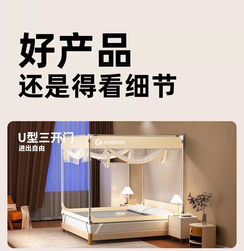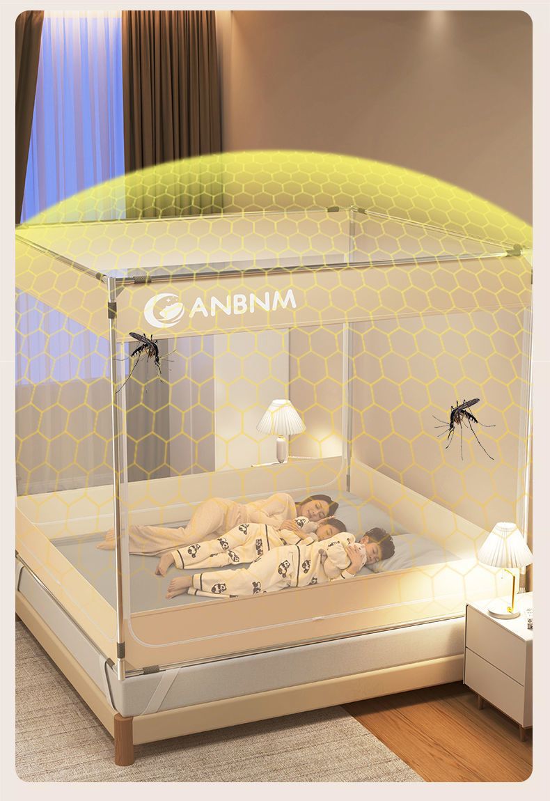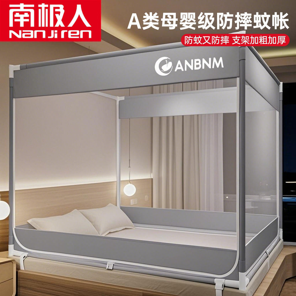 Nanjiren 3 도어 모기 방지 침대 커튼 여름 새로운 전체로 둘러싸인 낙하 방지 모기 방충망 홈 침실 모기 방지 텐트
