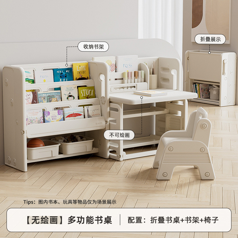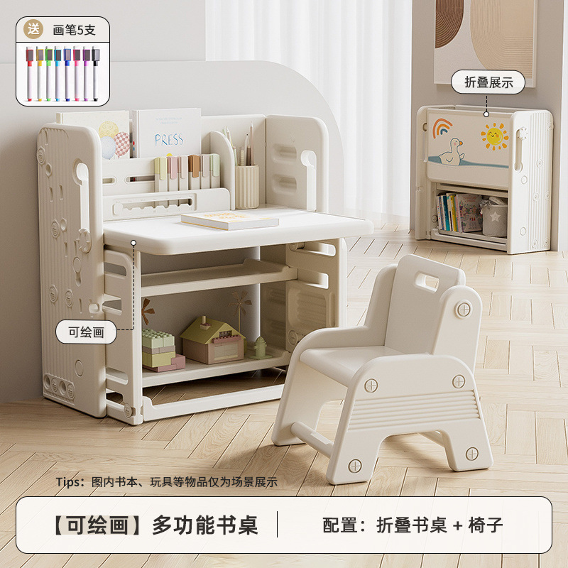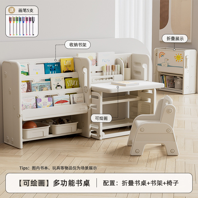 • [접이식] 다기능 학습 테이블 [그림 가능] + 책장 + 의자