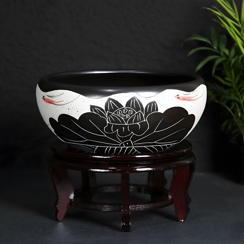 금붕어를 위한 세라믹 수조, 거북이 수조, 수련 그릇, 연꽃 수조, 연꽃 화분, 거실 장식품, 창의적인 복고풍 풍수 수조스토어 가기