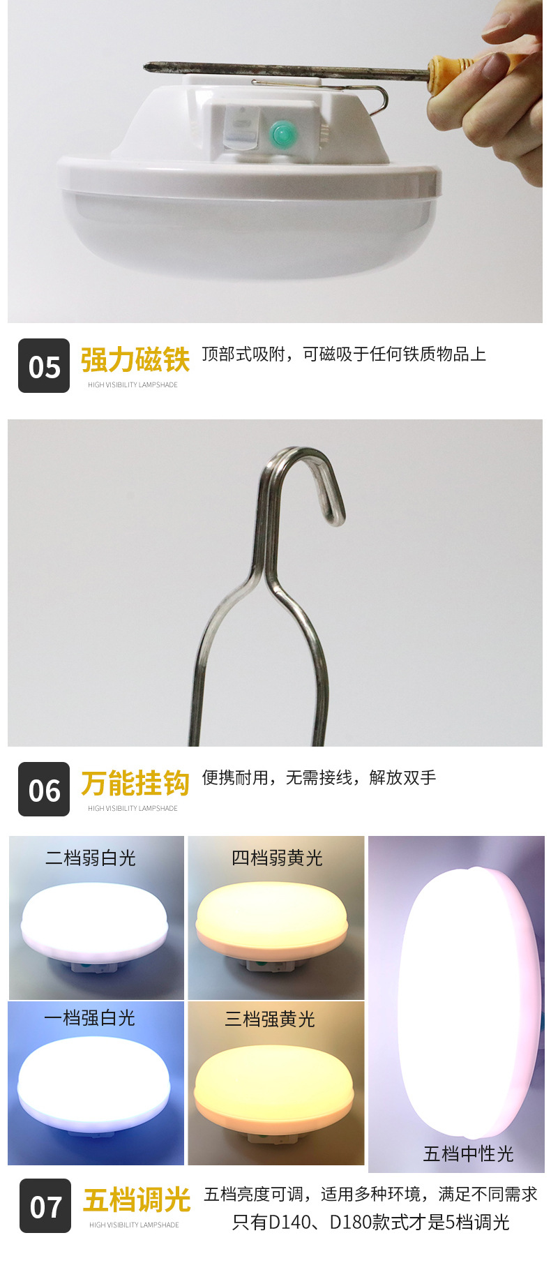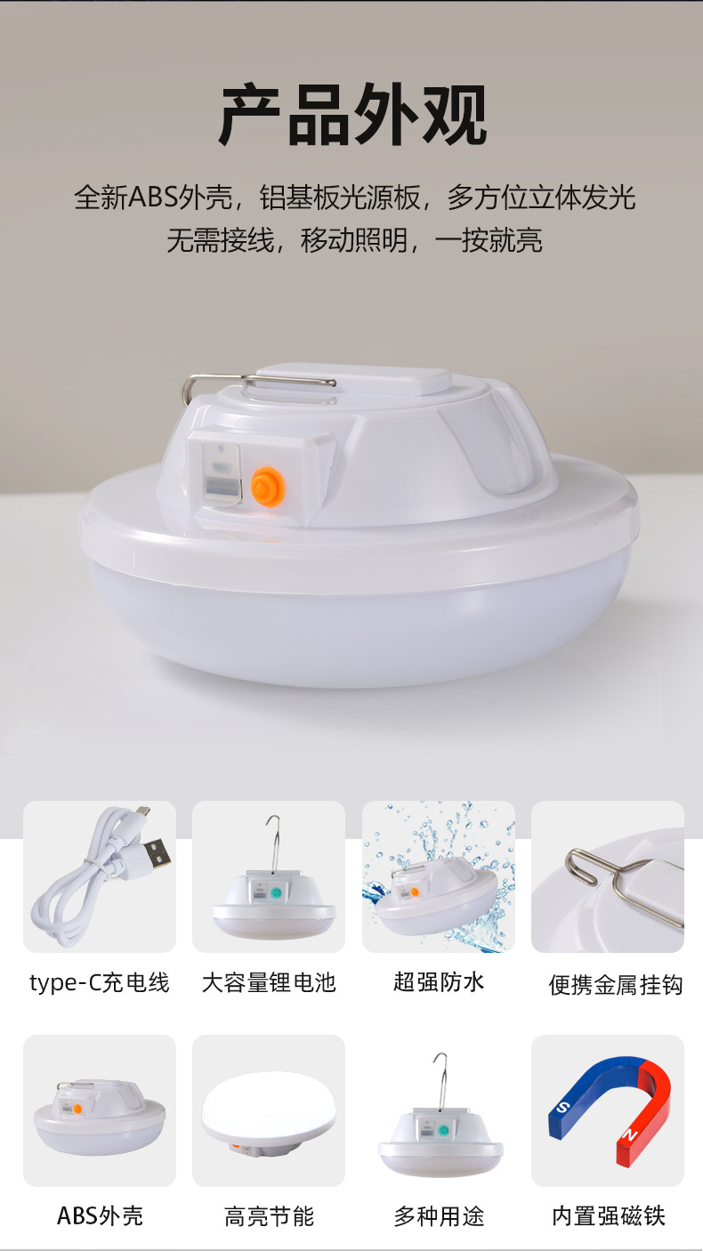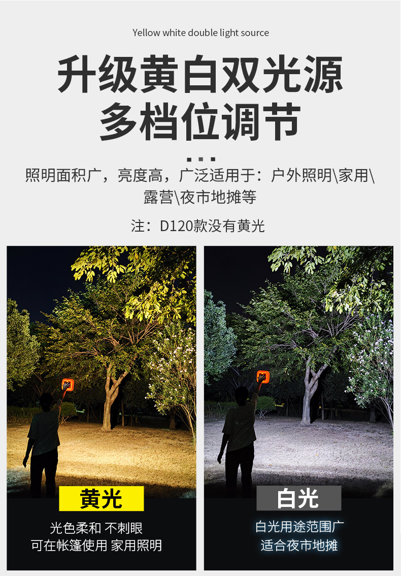• 대형 D140A 흰색, 노란색 및 따뜻한 3색 조명 8800mAh + 자기 흡입 + 배터리 수명 8-50H