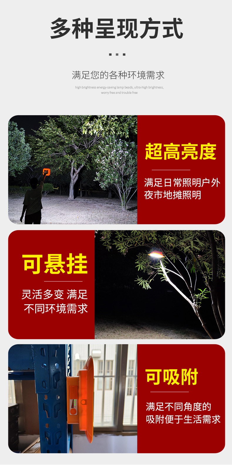 • 대형 D140B 흰색, 노란색 및 따뜻한 3색 조명 12000mAh + 자기 흡입 + 배터리 수명 12-80H