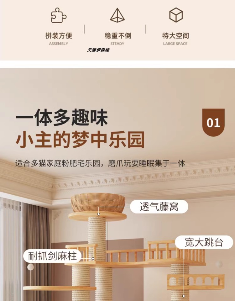 고양이 클라이밍 프레임, 원목 대형 고양이 둥지, 고양이 트리 일체형, 공간 절약형, 메인에인트 멀티 고양이 클라이밍 프레임, 가정용 대형 럭셔리스토어 가기