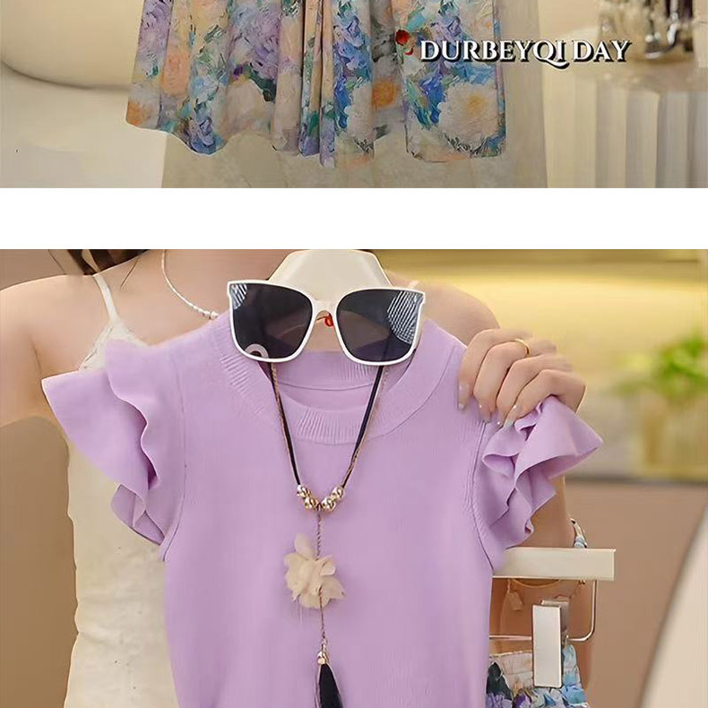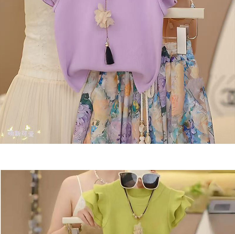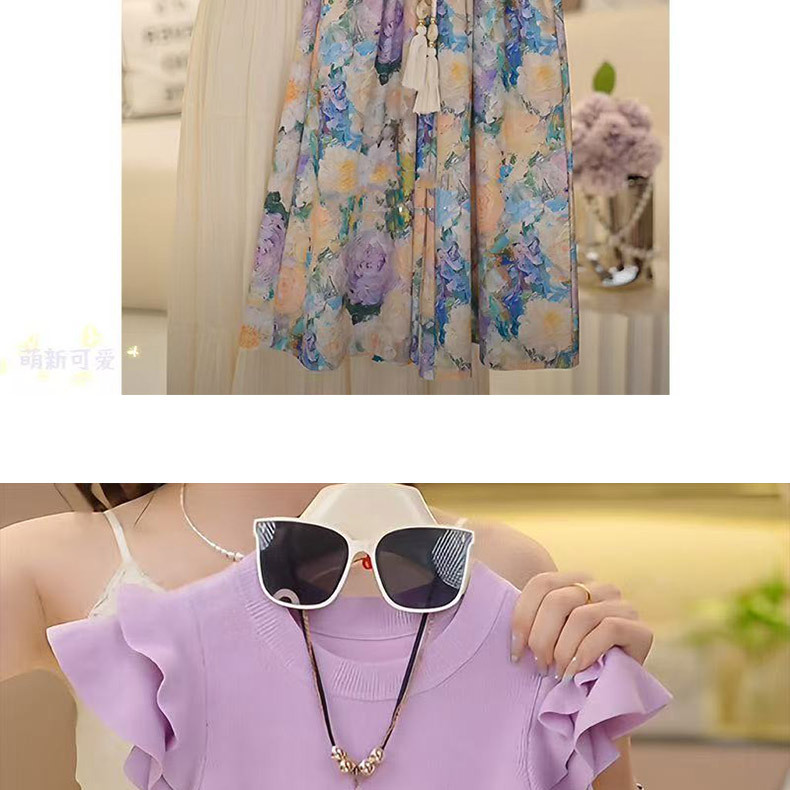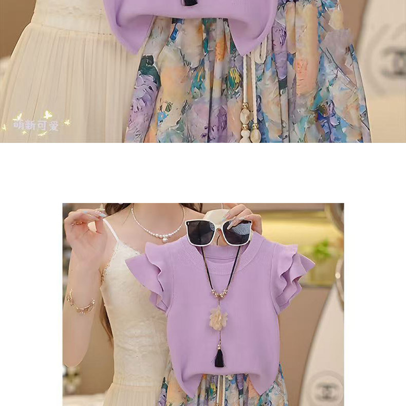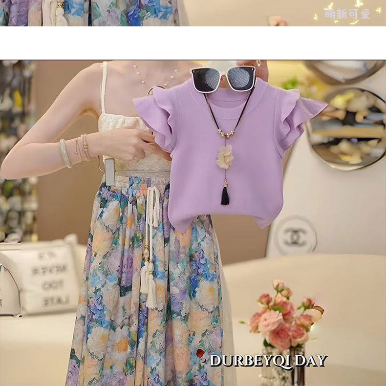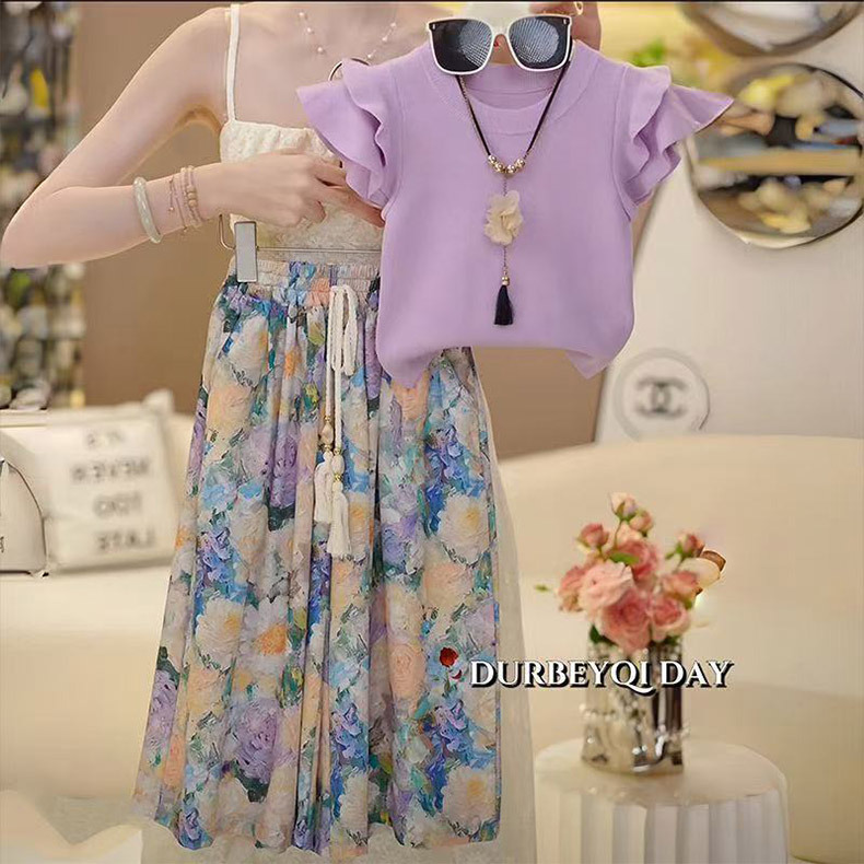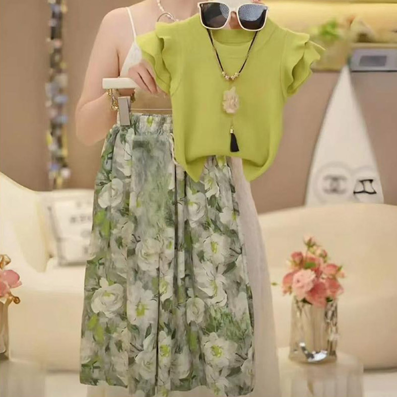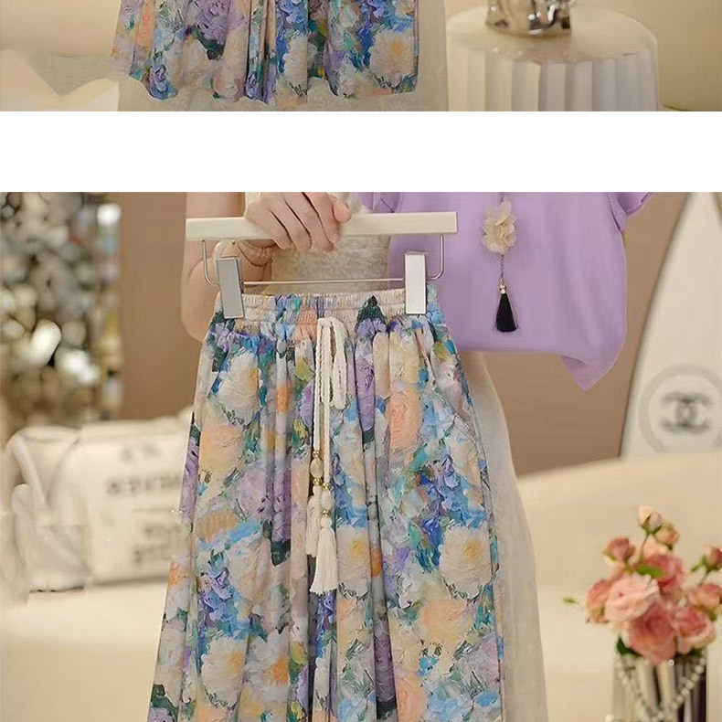 여자 프릴 반팔 양복 여름 2025 새로운 초박형 레이스 티셔츠 쉬폰 꽃 무늬 와이드 팬츠 모기 방지 얇은스토어 가기
