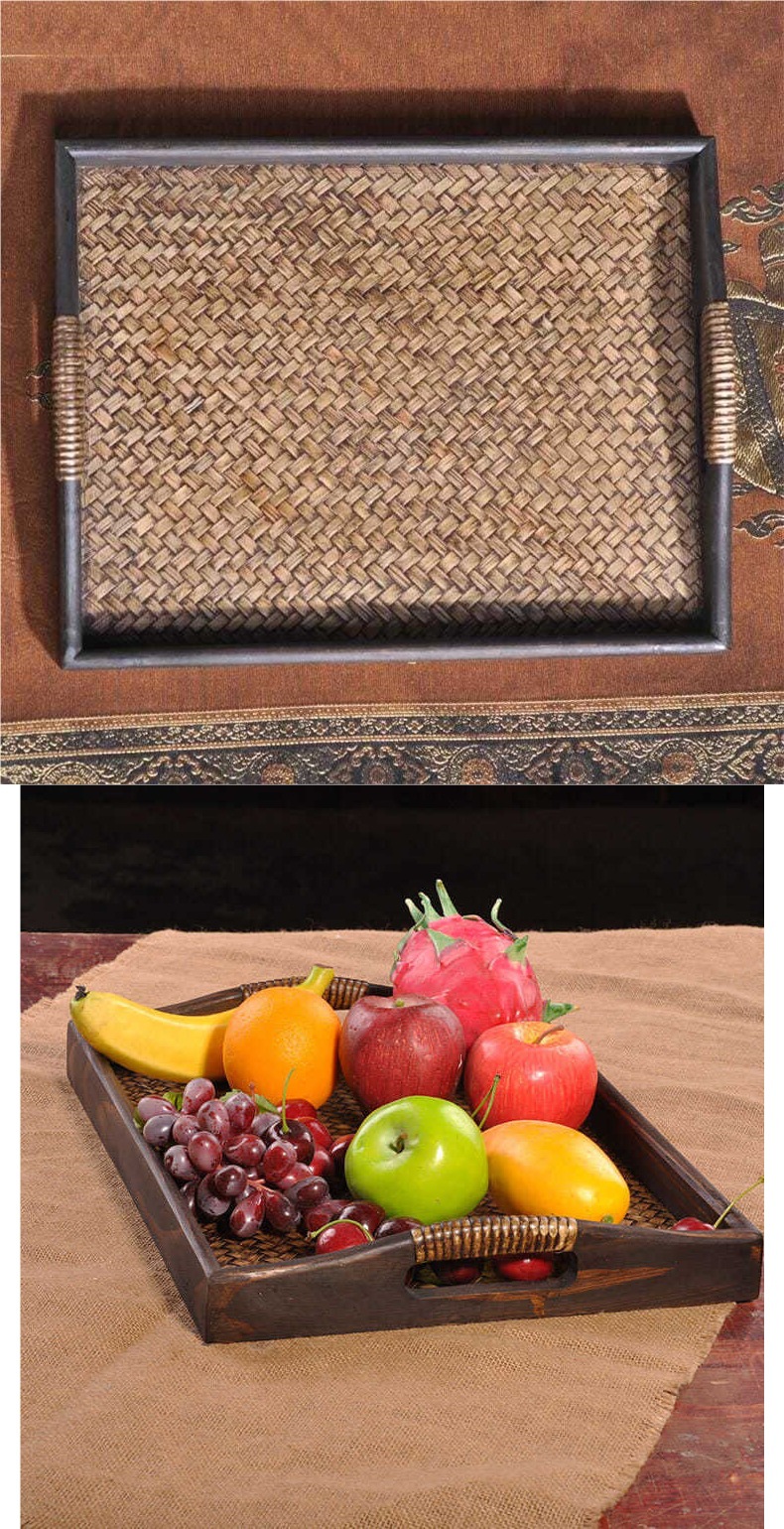 태국 원목 대나무 트레이 동남아 복고풍 과일 트레이 태국 호텔 안뜰 찻집 차 트레이 과일 바구니스토어 가기