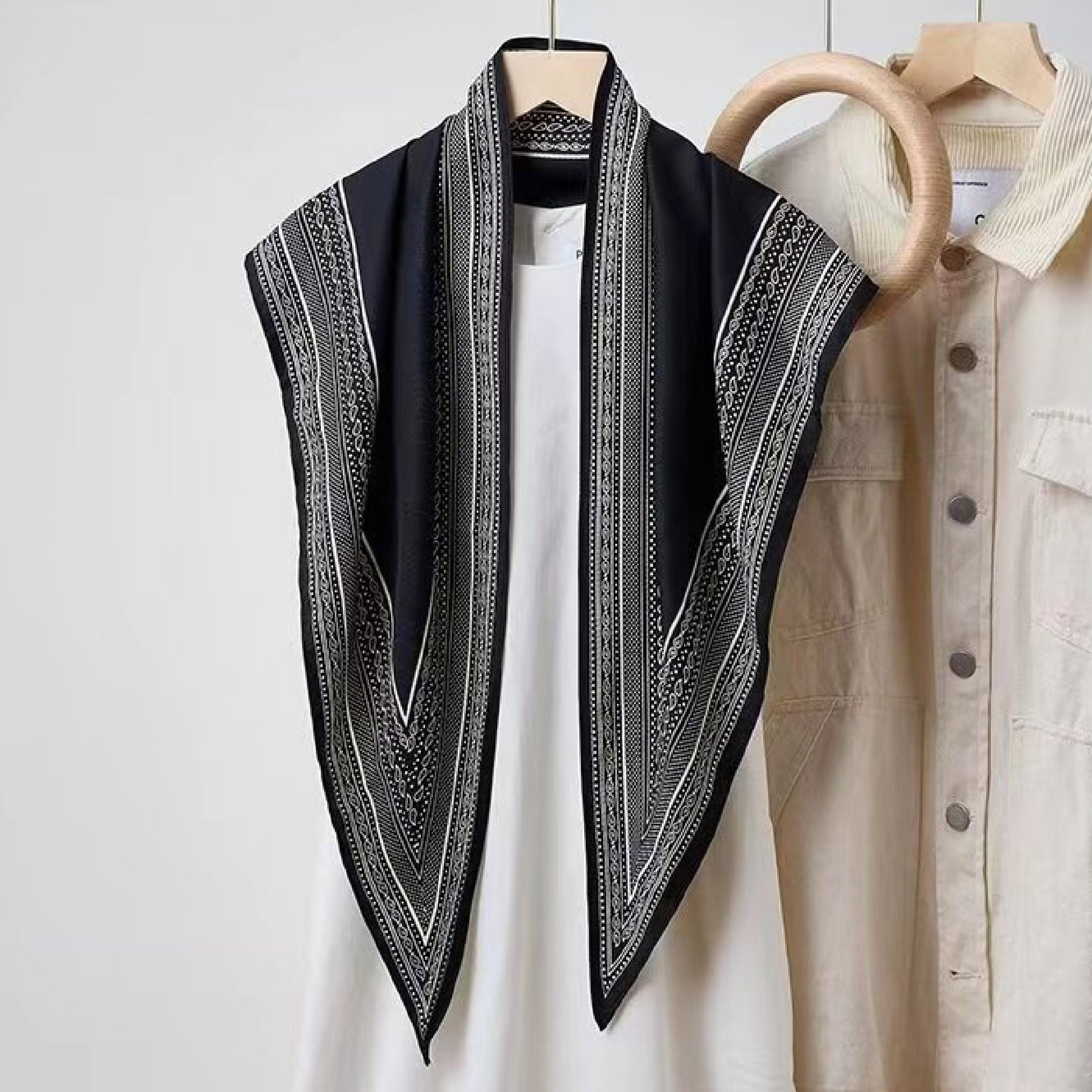 가벼운 고급 패션 능직 삼각형 실크 스카프 여성 삼각형 스카프 터번 블랙 스카프 사무실 숄 장식