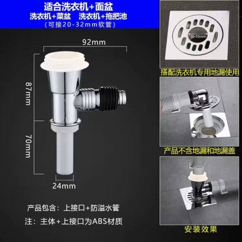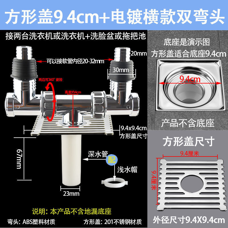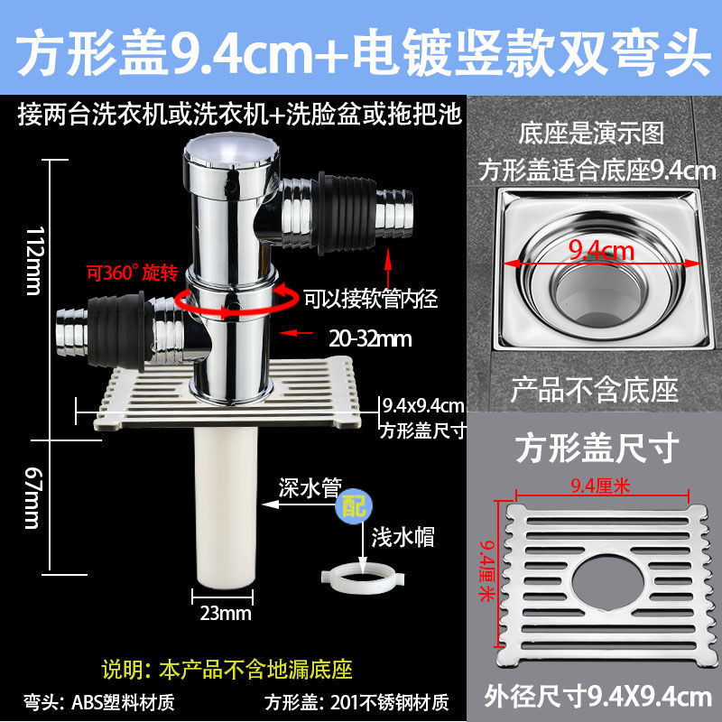 세탁기 하수구 및 바닥 배수구용 특수 커넥터 2-in-1 누수 방지 배수 및 오버플로 방지 3방향 이중 목적 사각 커버