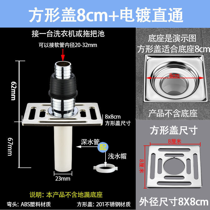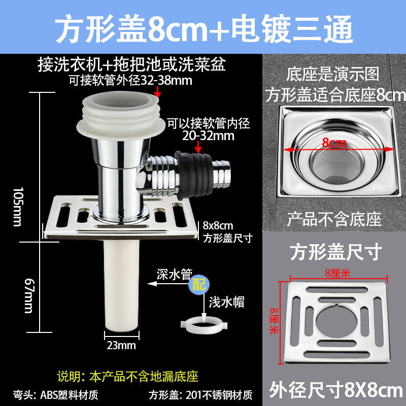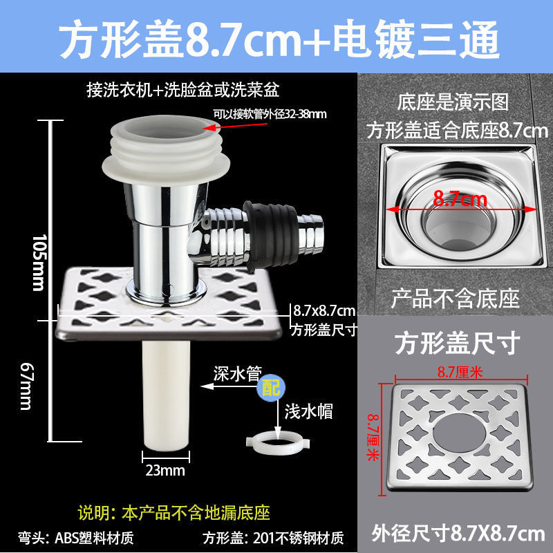 세탁기 하수구 및 바닥 배수구용 특수 커넥터 2-in-1 누수 방지 배수 및 오버플로 방지 3방향 이중 목적 사각 커버스토어 가기