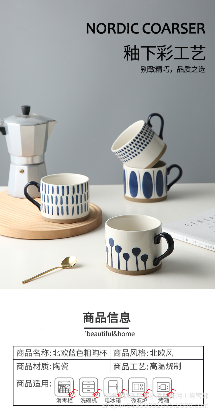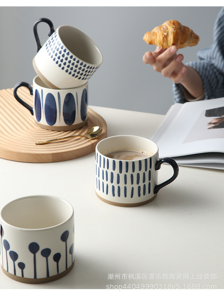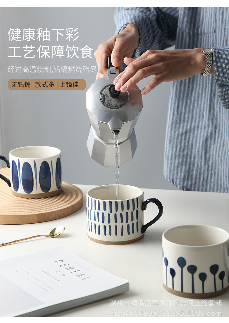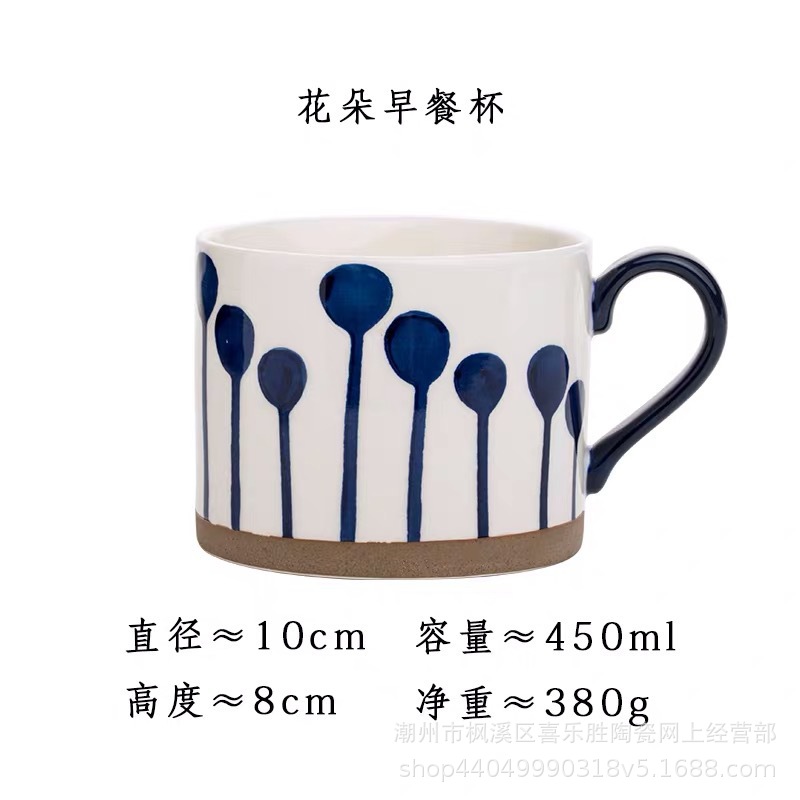 바구니 컬러 아침 식사 컵 대용량 underglaze 컬러 손으로 그린 세라믹 머그잔 오트밀 컵 뚱뚱한 북유럽 인 우유 컵
