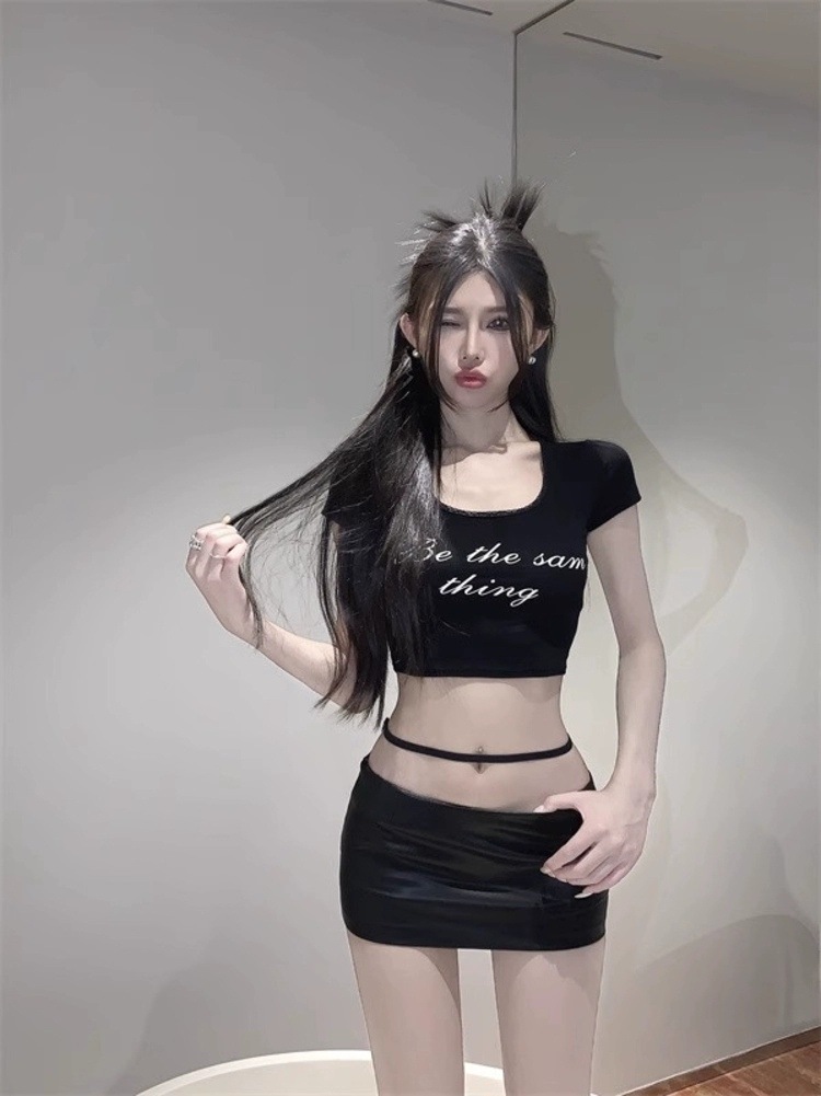 인터넷 연예인 2025 패션 유럽과 미국의 핫걸 꽉 끼는 엉덩이 커버 미니 스커트 노출 방지 탄성 밴드 로우 웨이스트 PU 하프 스커트스토어 가기