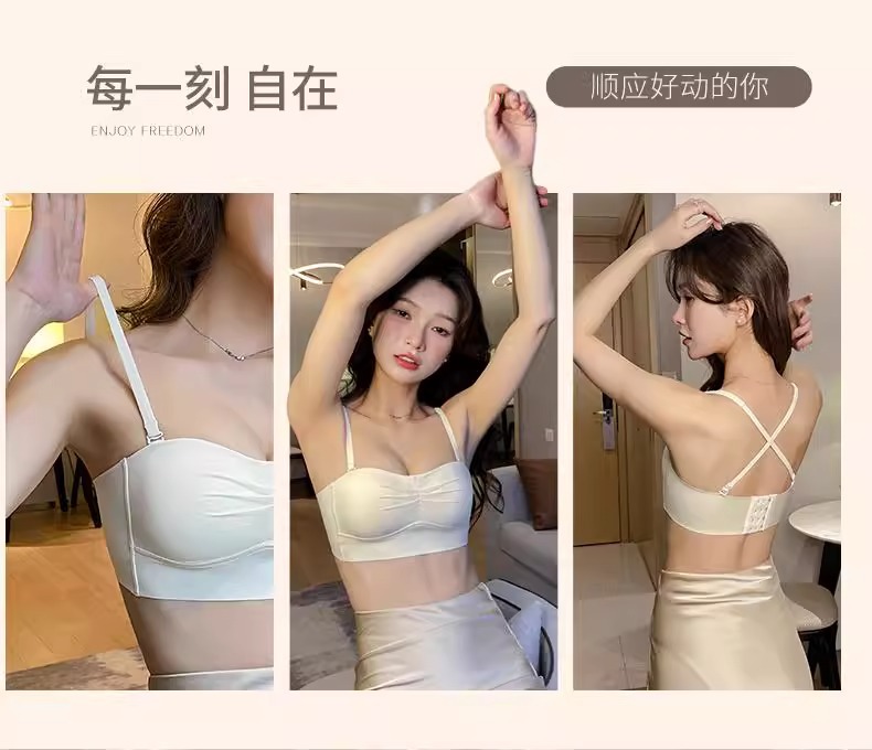 얇고 편안하며 흔적이 없는 속옷, 가슴이 작아 보이는 여성용 얇은 작은 가슴 푸시업 노출 방지 브라, 여름