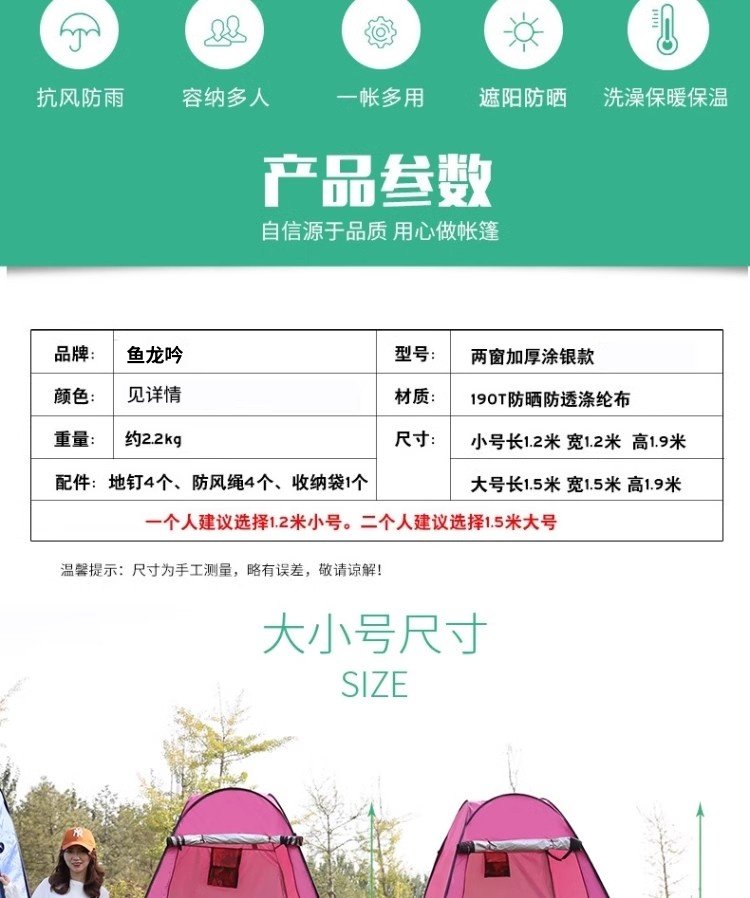 • [업그레이드된 특대 실버 코팅] 1인 1.2m 대목 위장 3창 실버 코팅 방풍 및 보온 [방풍 스커트 + 고정식 샤워부스 포함]