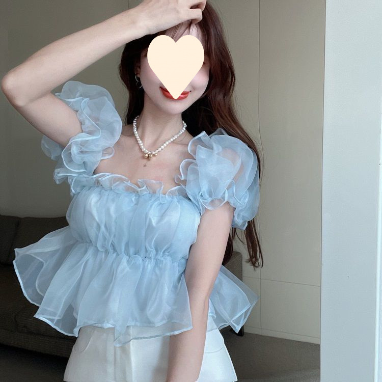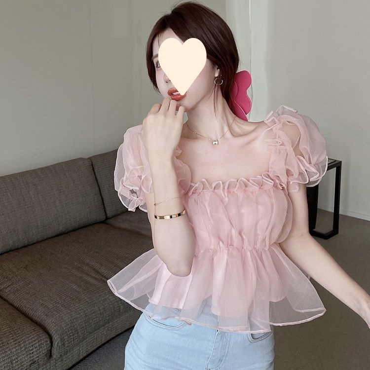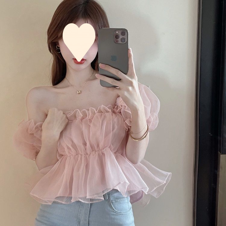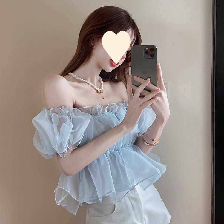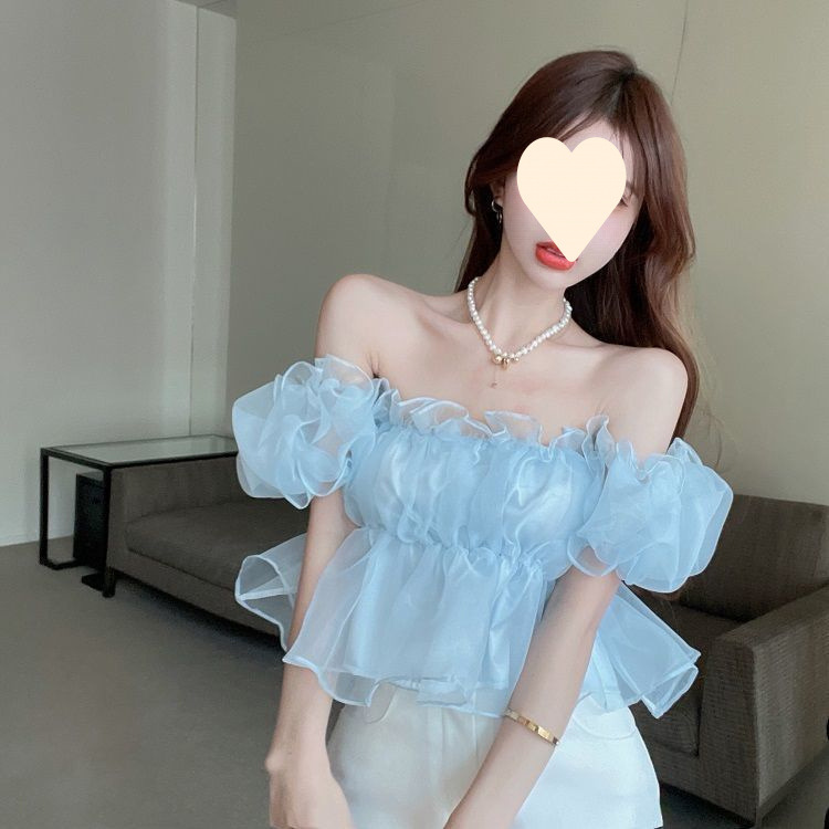 달콤한 원 숄더 탑 2025 뉴 여름 핫 걸 슬리밍 프렌치 퍼프 슬리브 원 숄더 반소매 쉬폰 셔츠스토어 가기