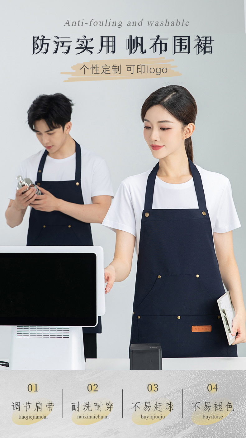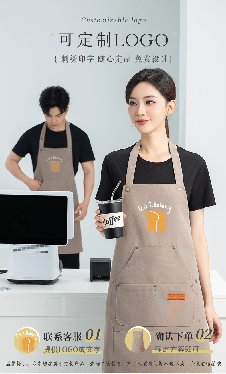 밀크티샵용 앞치마, 프린트가 있는 특별 웨이터, 베이킹 홀넥 풀오버 앞치마, 작업복, 남녀공용 카페 케이터링