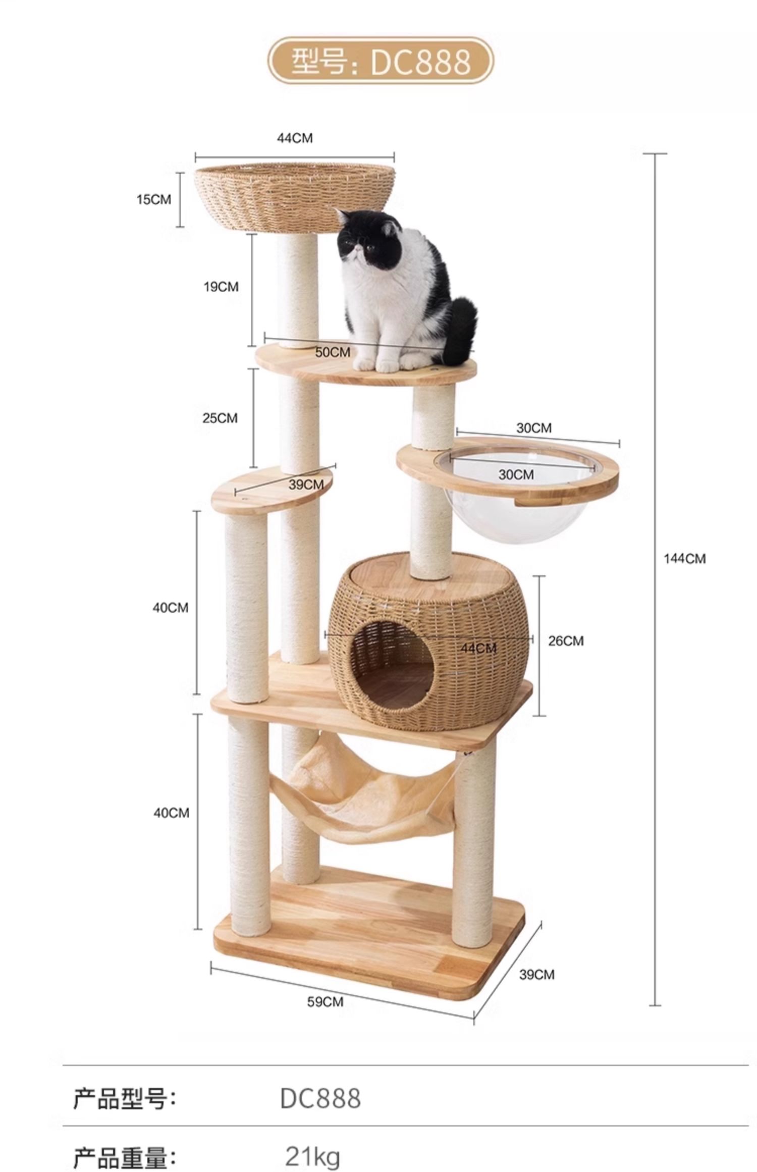 Ragdoll 대형 뚱뚱한 단단한 나무 고양이 클라이밍 프레임 고양이 둥지 고양이 트리 일체형 고층 간편한 관리 사마귀 직조 사계절 우주 캡슐