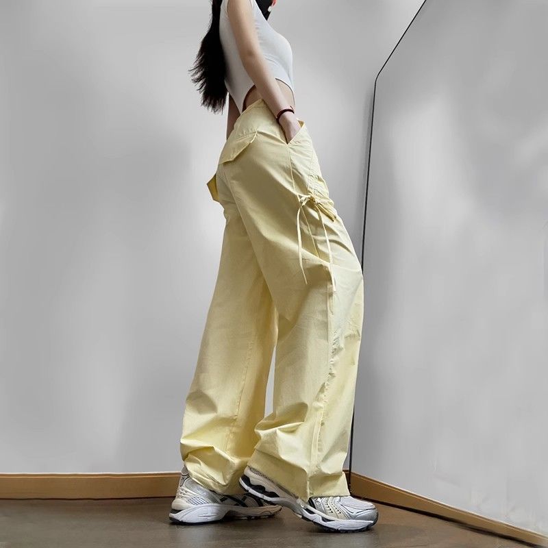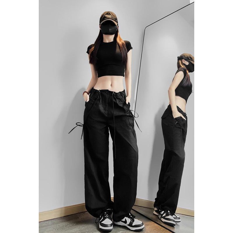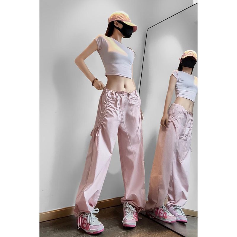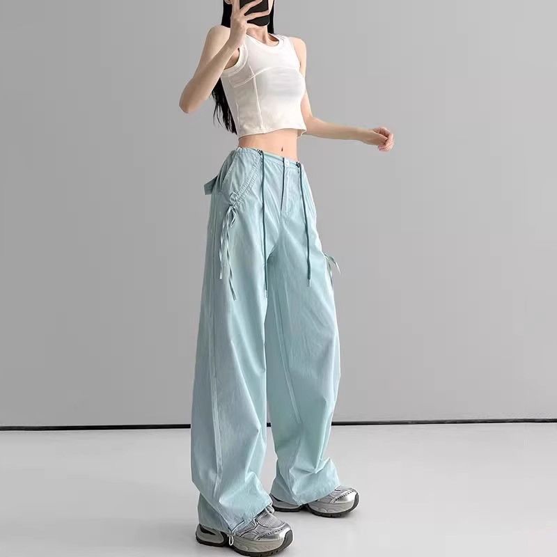 민트 그린 속건성 여성용 작업복 여름 하이 웨이스트 스트리트 재즈 댄스 슈트 도파민 스포츠 하이킹 파라트로퍼 바지