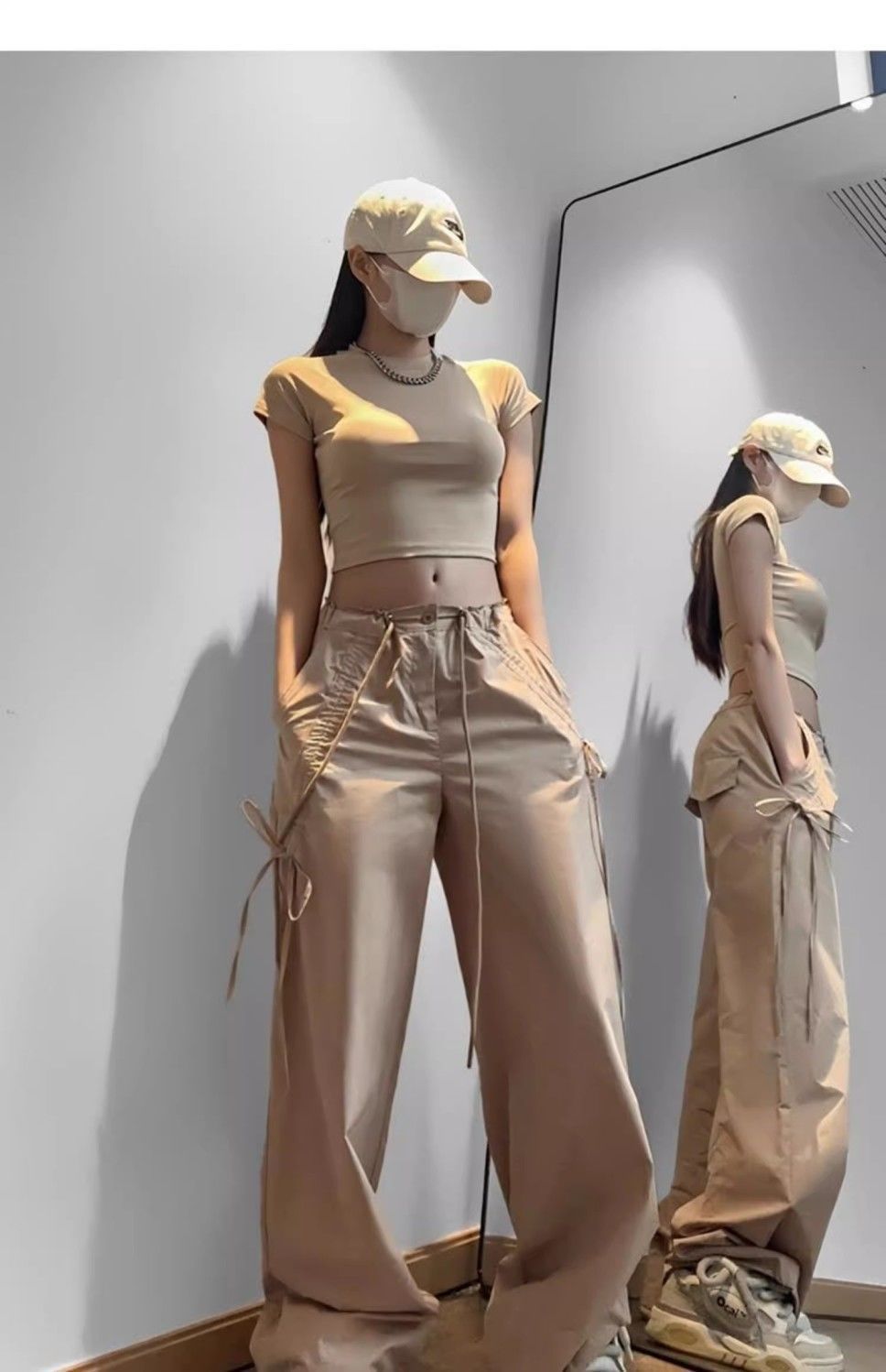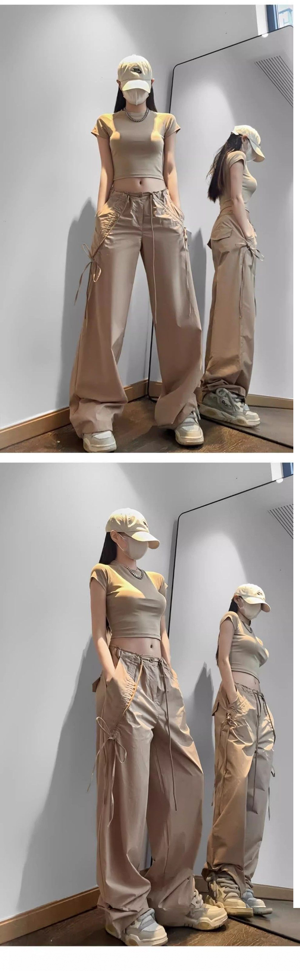 민트 그린 속건성 여성용 작업복 여름 하이 웨이스트 스트리트 재즈 댄스 슈트 도파민 스포츠 하이킹 파라트로퍼 바지스토어 가기