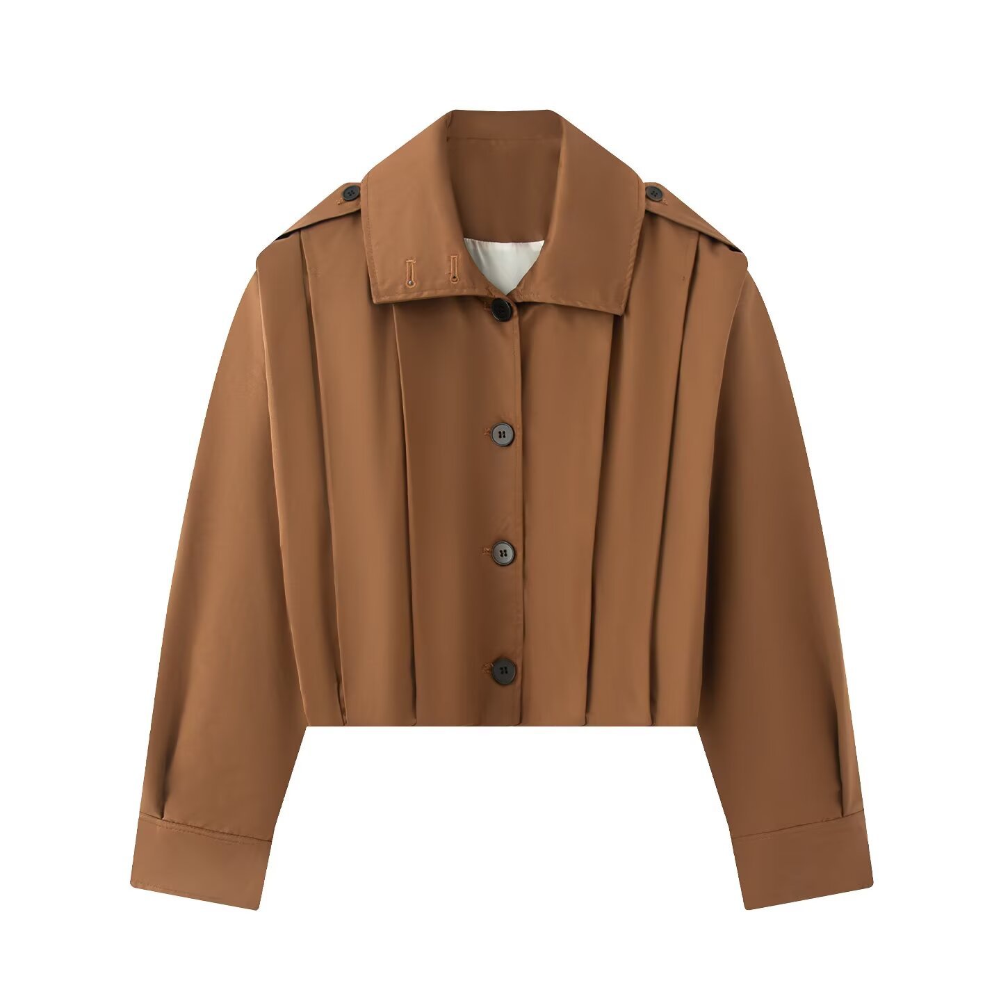 Z 유럽과 미국의 국경 간 여성 의류 2025 봄 새로운 복고풍 작업복 주름 단추 짧은 재킷 탑