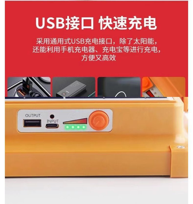 • 폭발적인 밝기: 215*175mm 럭셔리 4그리드 모델-태양광 패널-+USB 충전식 휴대폰