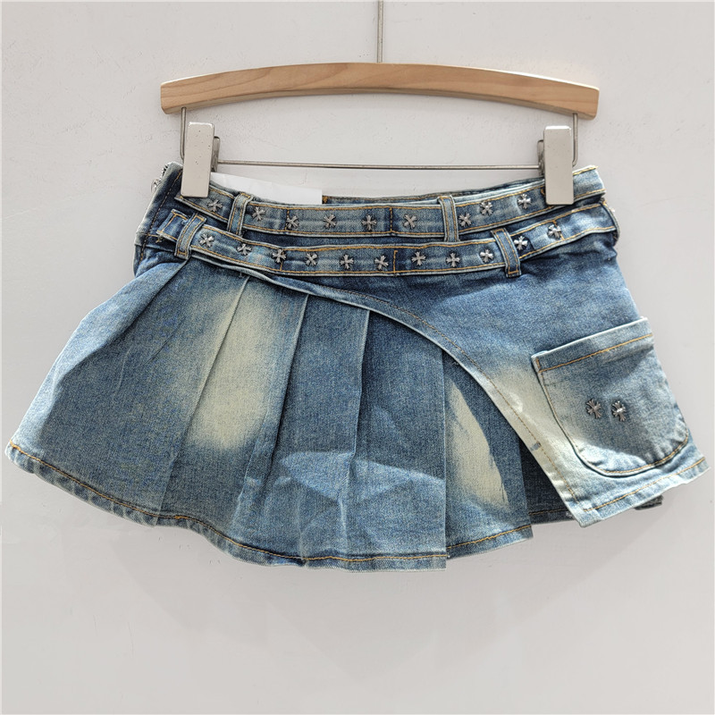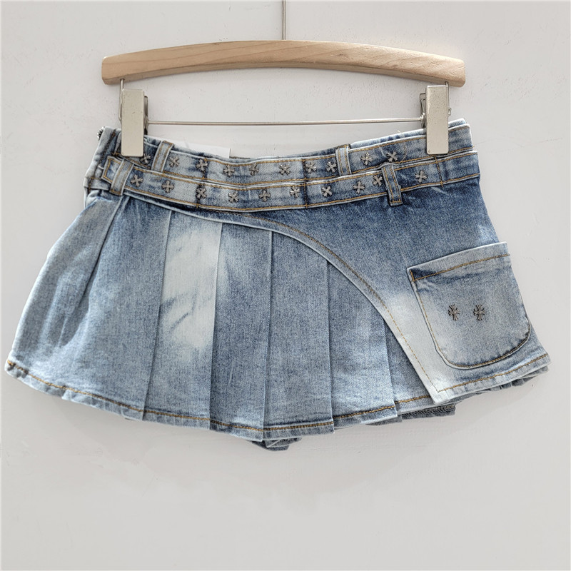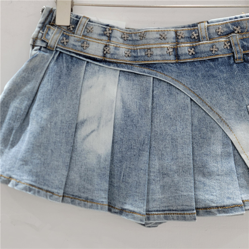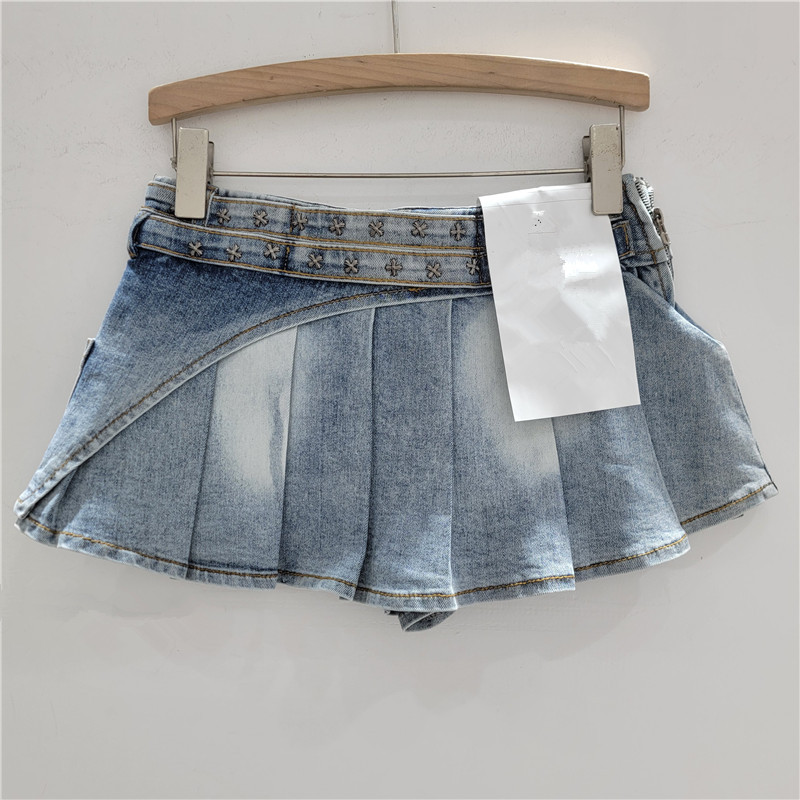 아메리칸 핫걸 워싱 울트라 쇼트 플리츠 스커트 여성 디자인 하이웨이스트 슬리밍 힙 커버 노출 방지 스커트