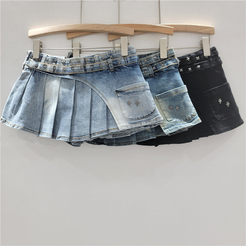 아메리칸 핫걸 워싱 울트라 쇼트 플리츠 스커트 여성 디자인 하이웨이스트 슬리밍 힙 커버 노출 방지 스커트스토어 가기
