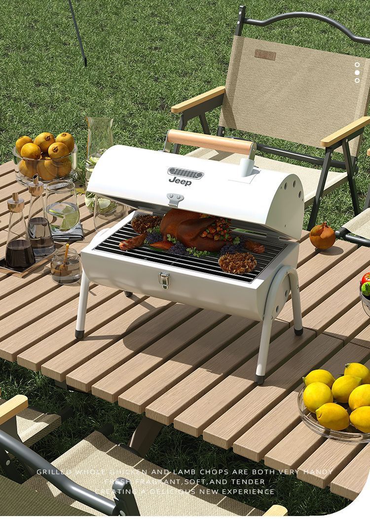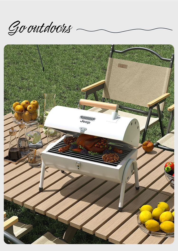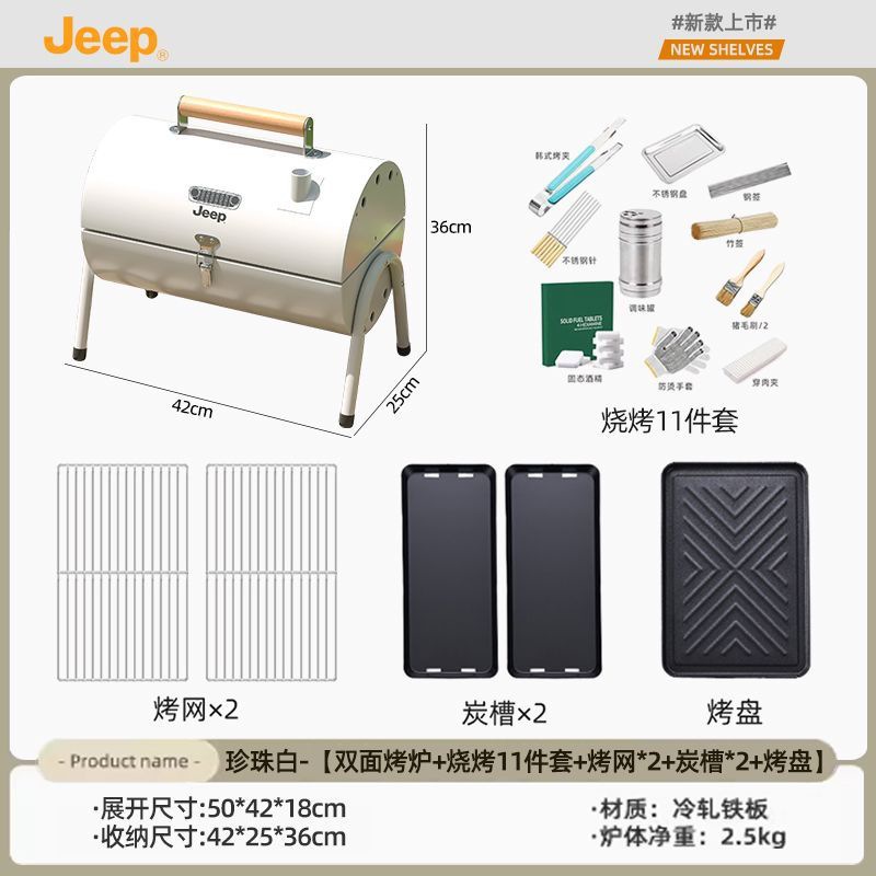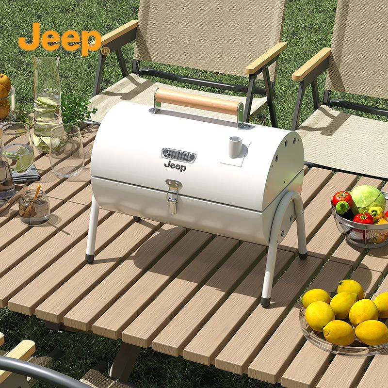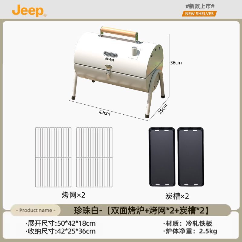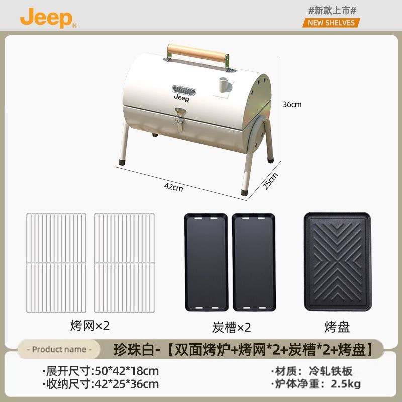 JEEP 야외 바베큐 그릴 가정용 굴뚝 접이식 휴대용 양면 숯불 바베큐 캠핑 꼬치스토어 가기