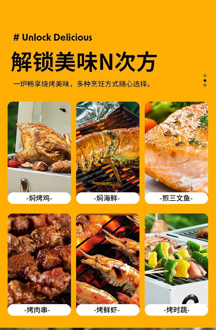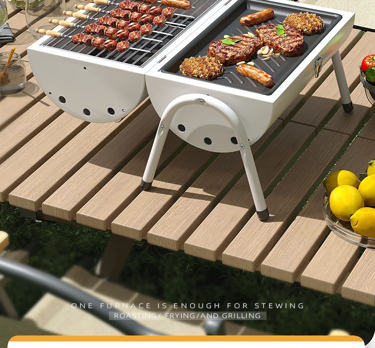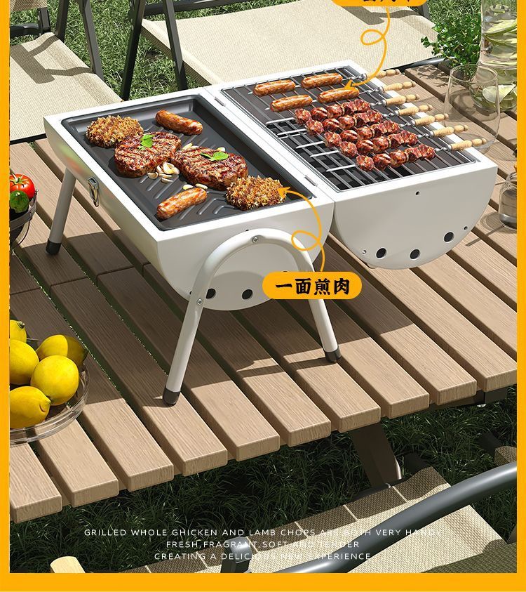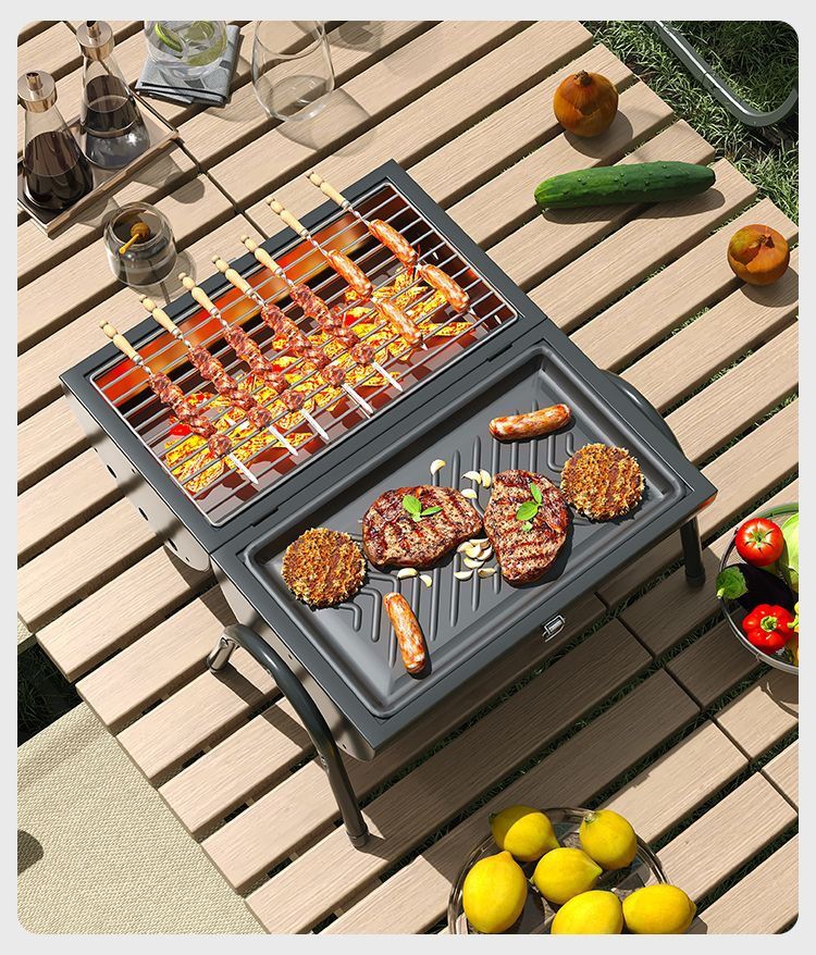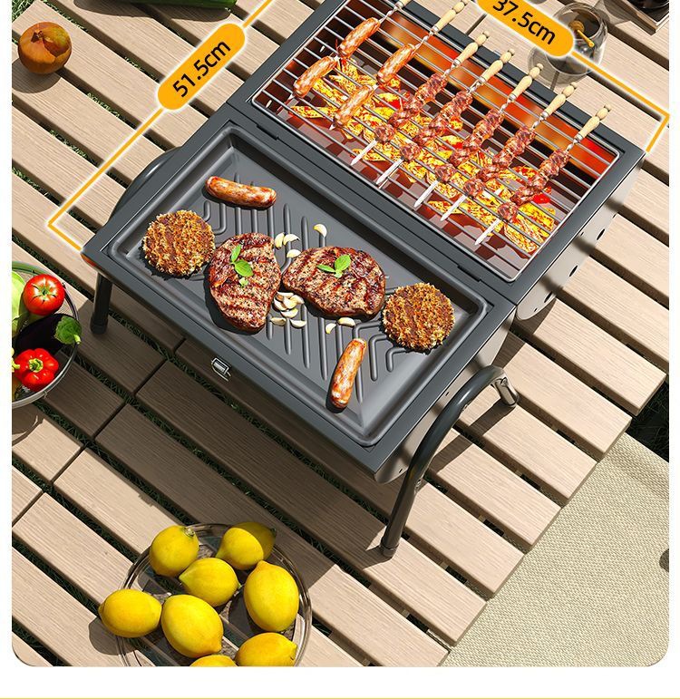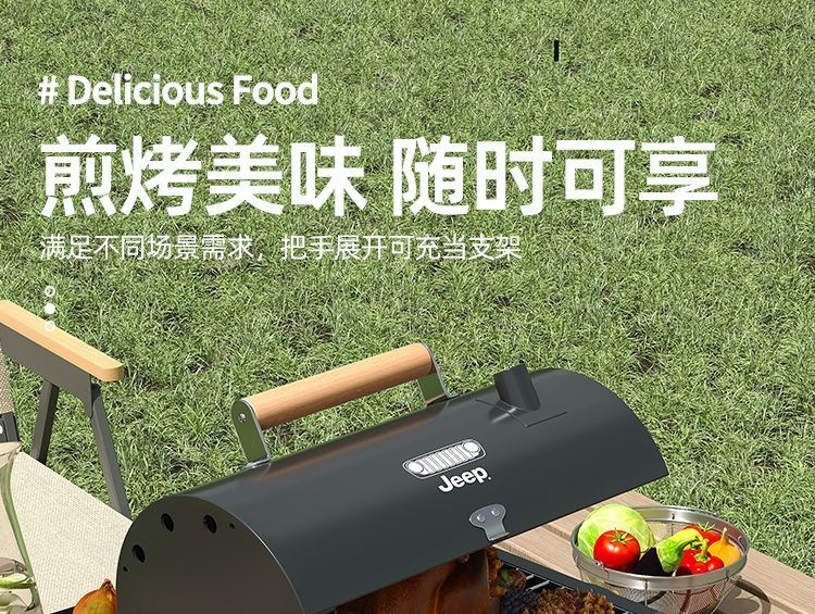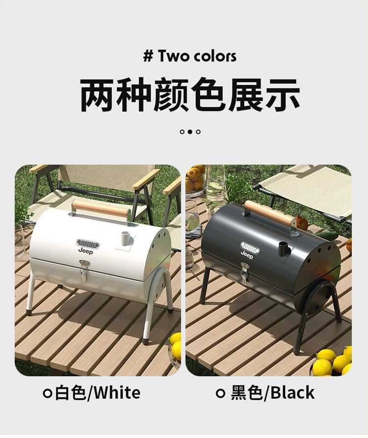 JEEP 야외 바베큐 그릴 가정용 굴뚝 접이식 휴대용 양면 숯불 바베큐 캠핑 꼬치스토어 가기