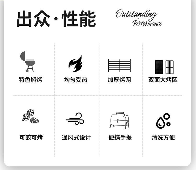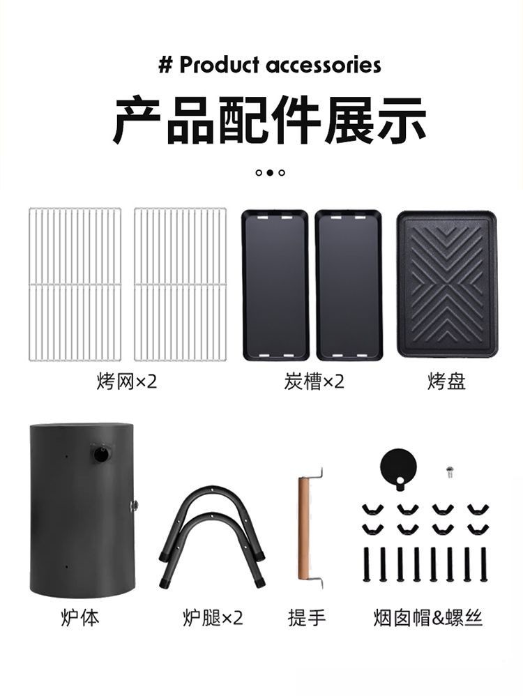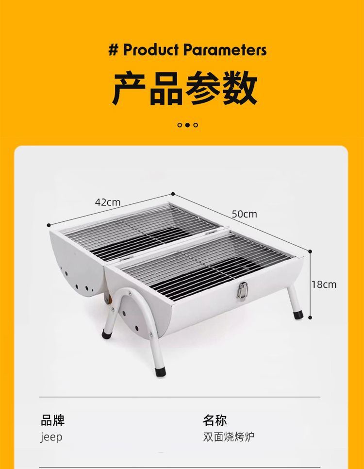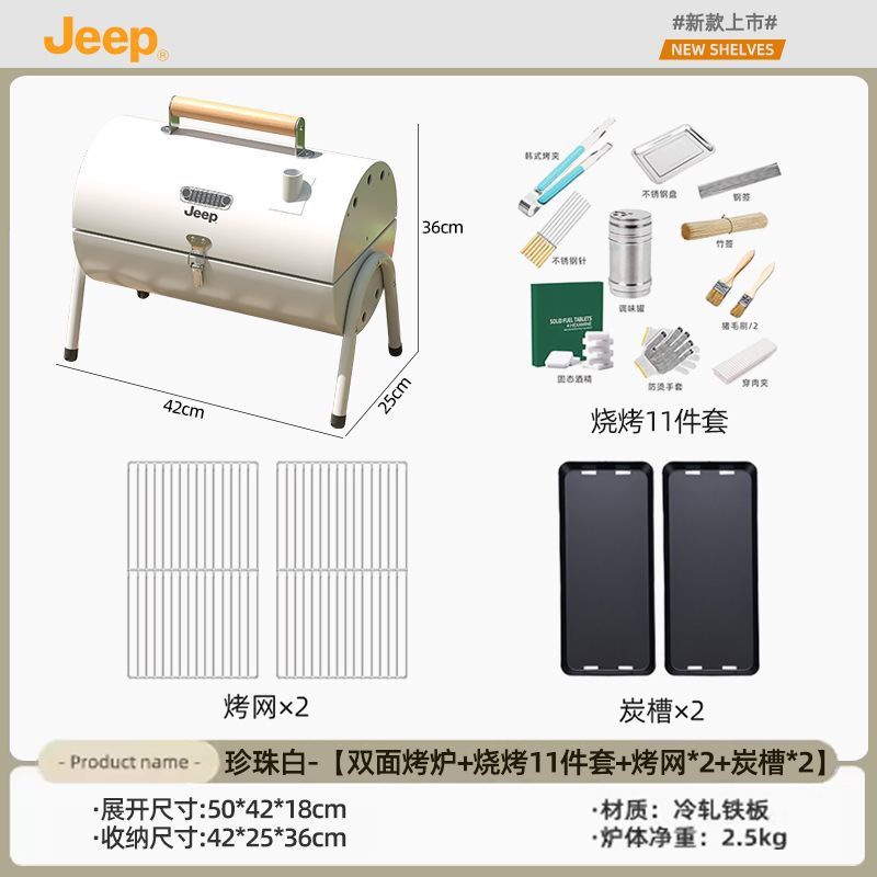 JEEP 야외 바베큐 그릴 가정용 굴뚝 접이식 휴대용 양면 숯불 바베큐 캠핑 꼬치