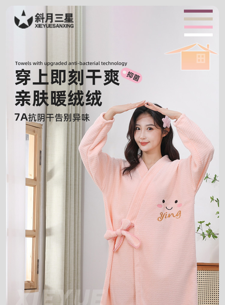 새로운 스타일의 긴팔 목욕 가운, 성인이 착용하고 감을 수 있는 잠옷, 두껍고 흡수성이 뛰어난 학생 가을 겨울 부드럽고 속건성 목욕 타월스토어 가기