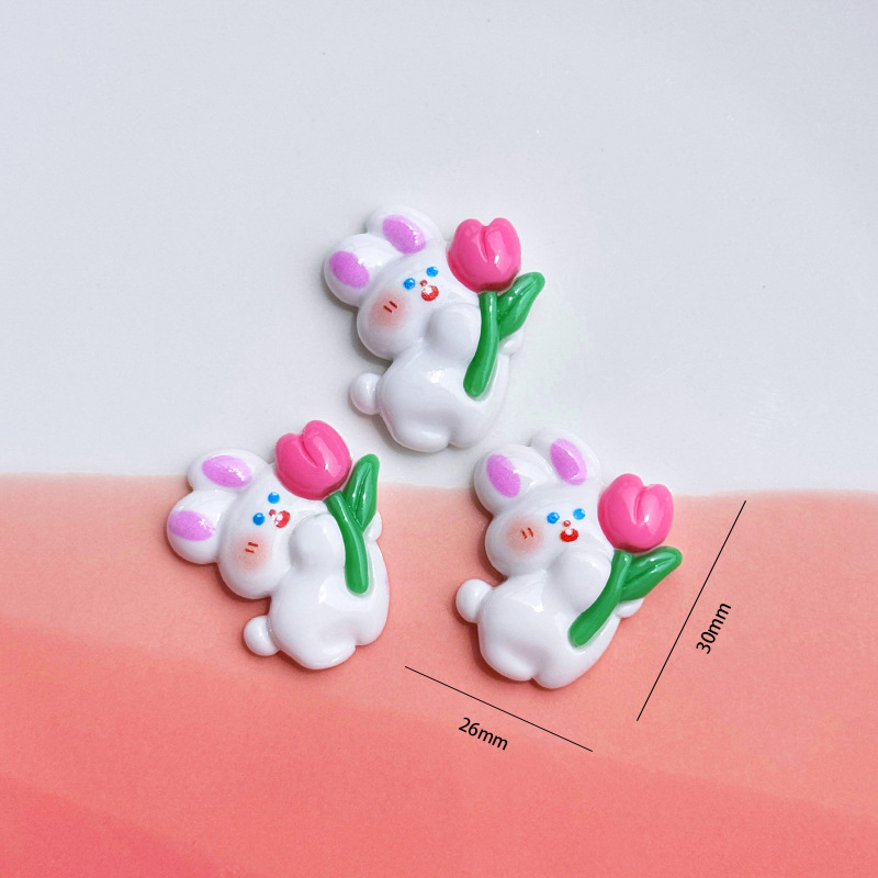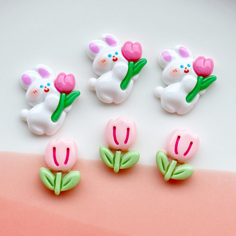 만화 튤립 토끼 수지 diy 쥬얼리 휴대 전화 케이스 냉장고 휴대 전화 홀더 패치 머리핀 헤어 액세서리 재료