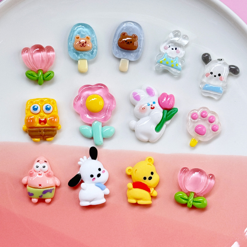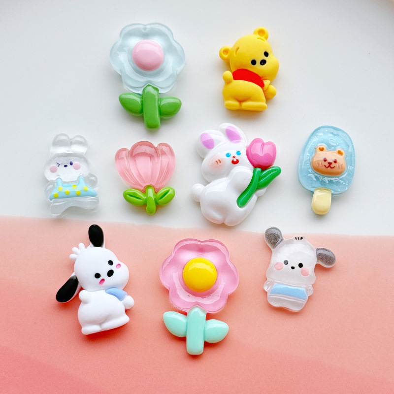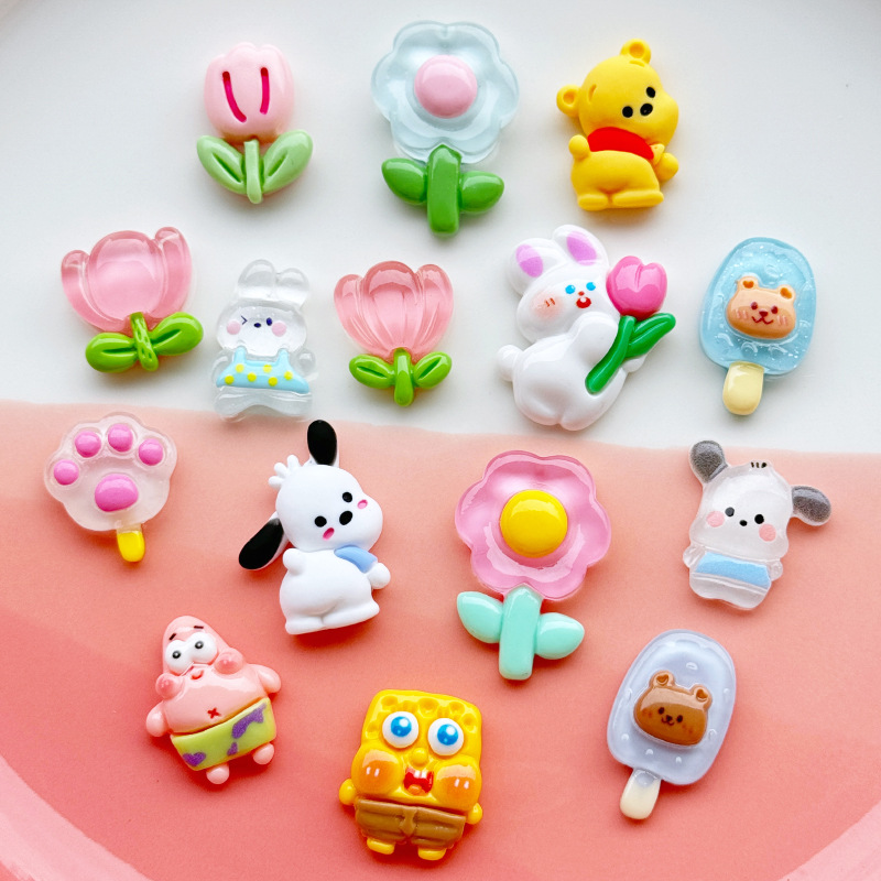 만화 튤립 토끼 수지 diy 쥬얼리 휴대 전화 케이스 냉장고 휴대 전화 홀더 패치 머리핀 헤어 액세서리 재료스토어 가기