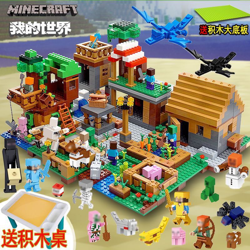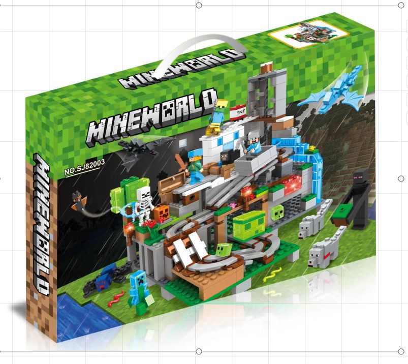국경 간 호환 가능한 빌딩 블록 Minecraft 퍼즐 소년 조립 작은 입자 장난감 메커니즘 동굴 훈련 선물스토어 가기