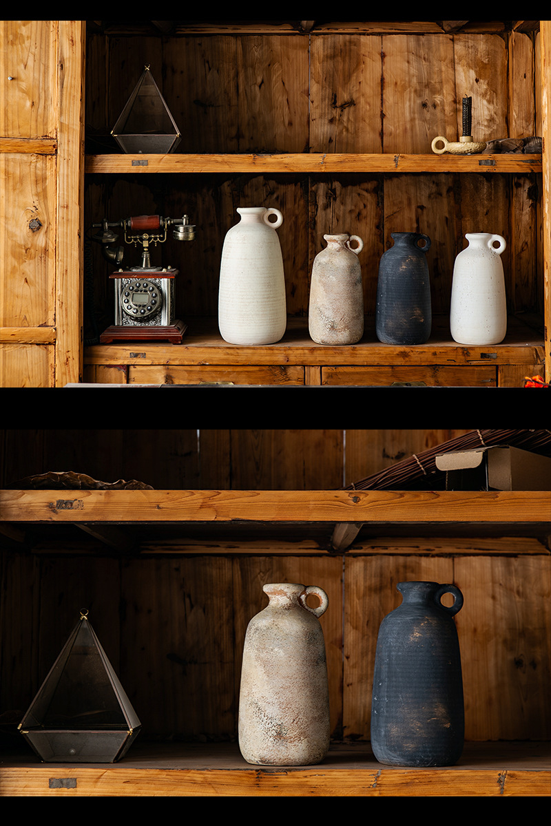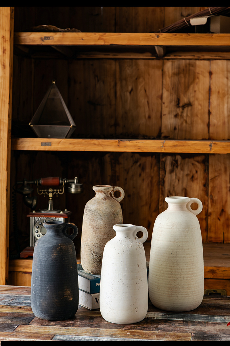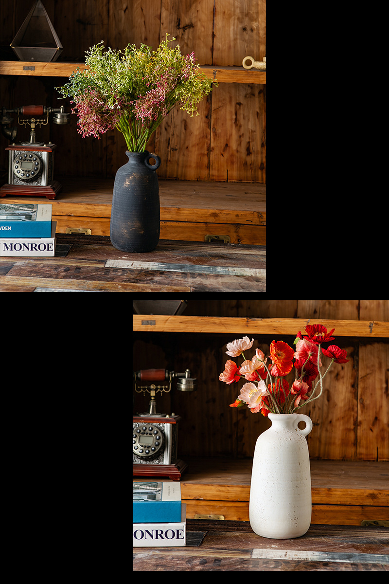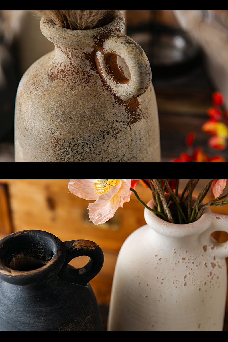 얇은 입 작은 꽃병, 복고풍 세라믹 꽃병, 와비사비 일반 도자기 장식품, 거실 꽃꽂이, 간단한 가정 장식 꽃 용기