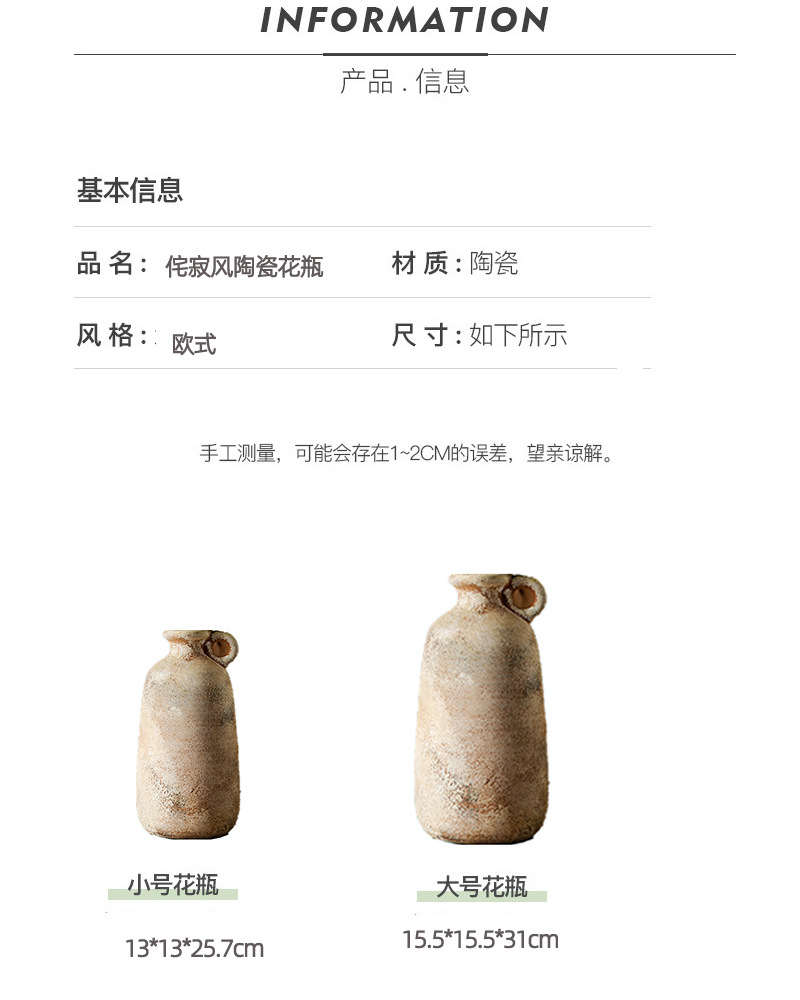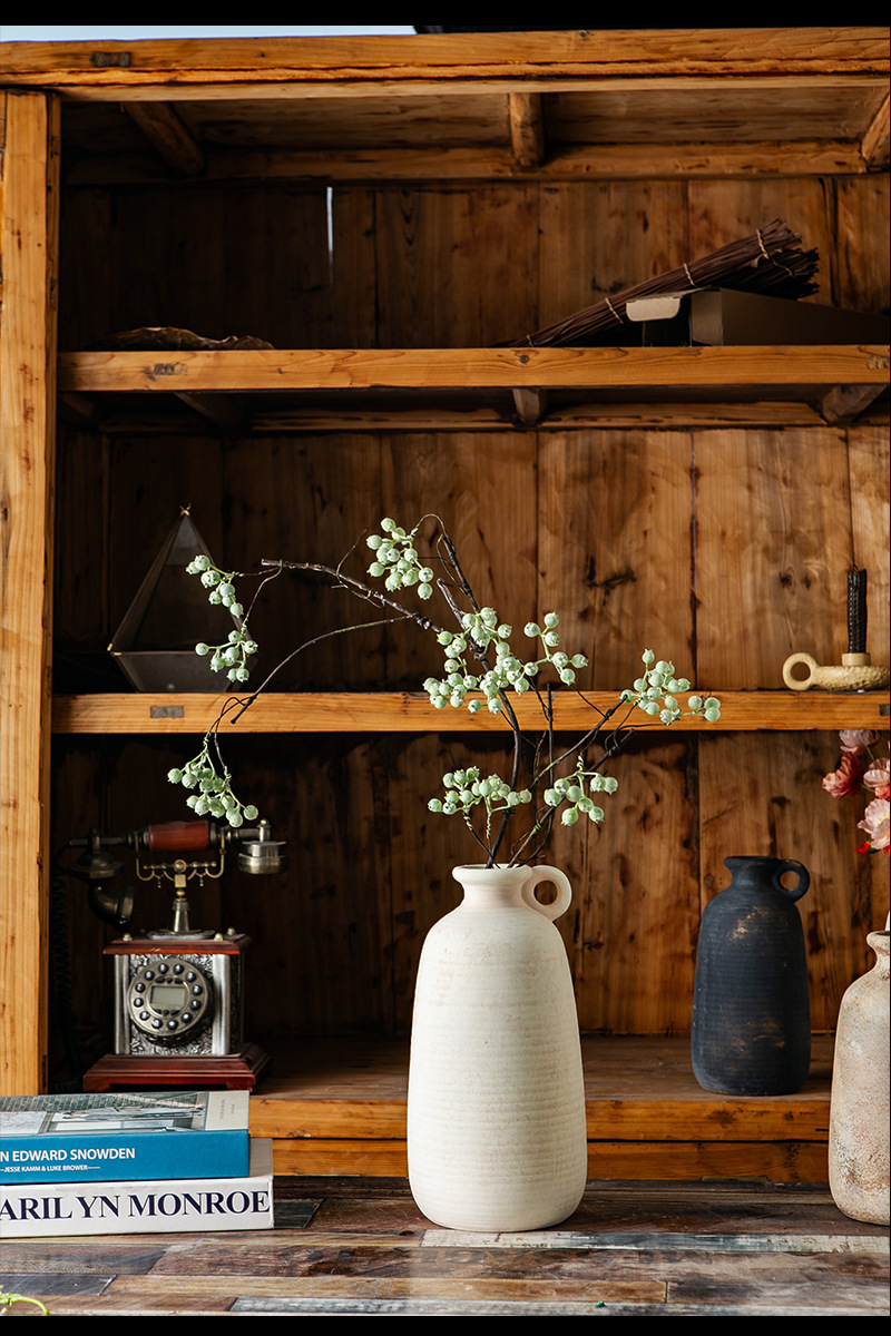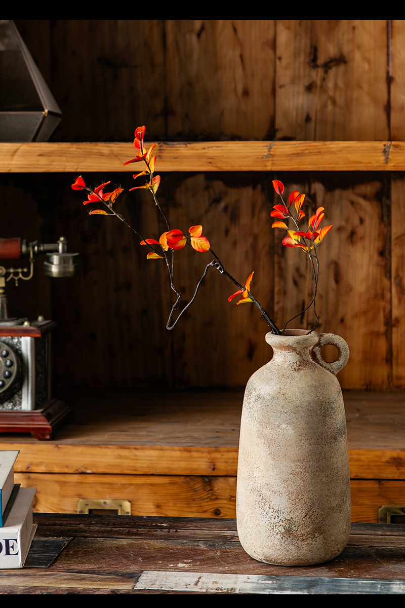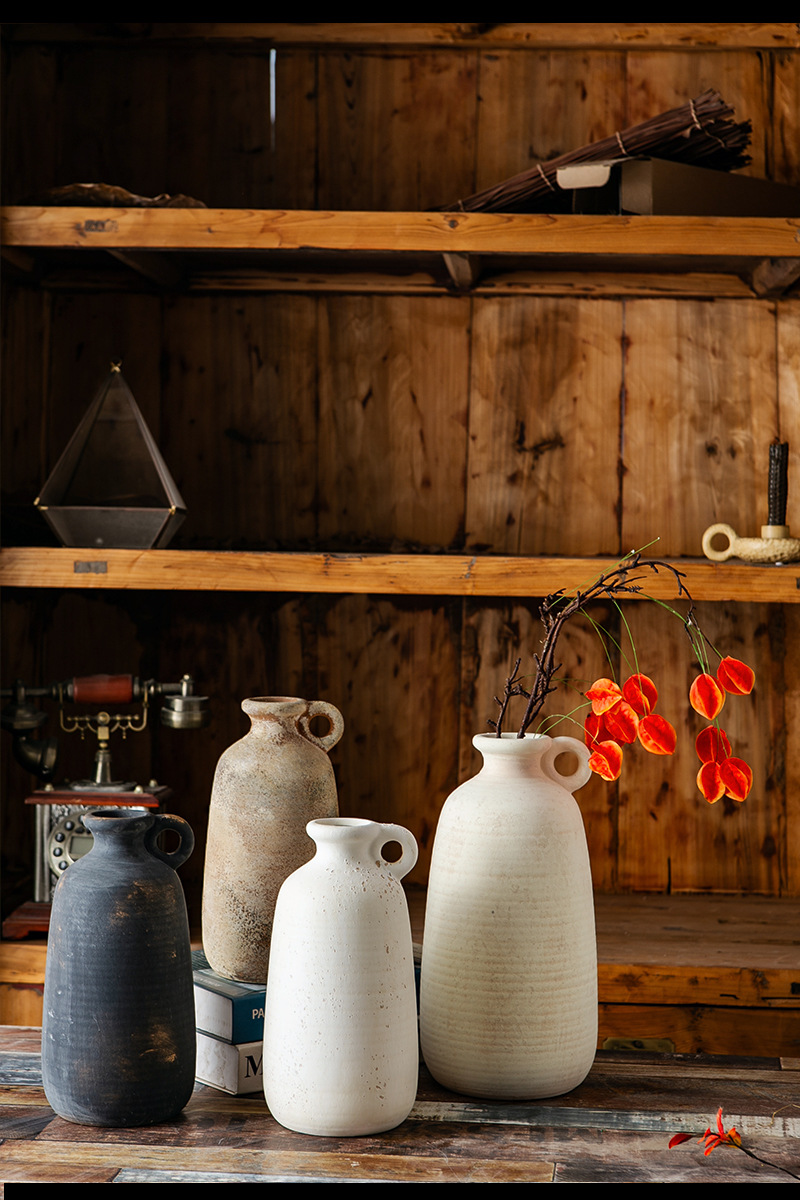 얇은 입 작은 꽃병, 복고풍 세라믹 꽃병, 와비사비 일반 도자기 장식품, 거실 꽃꽂이, 간단한 가정 장식 꽃 용기스토어 가기