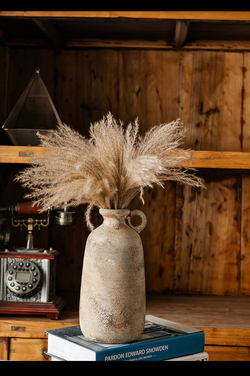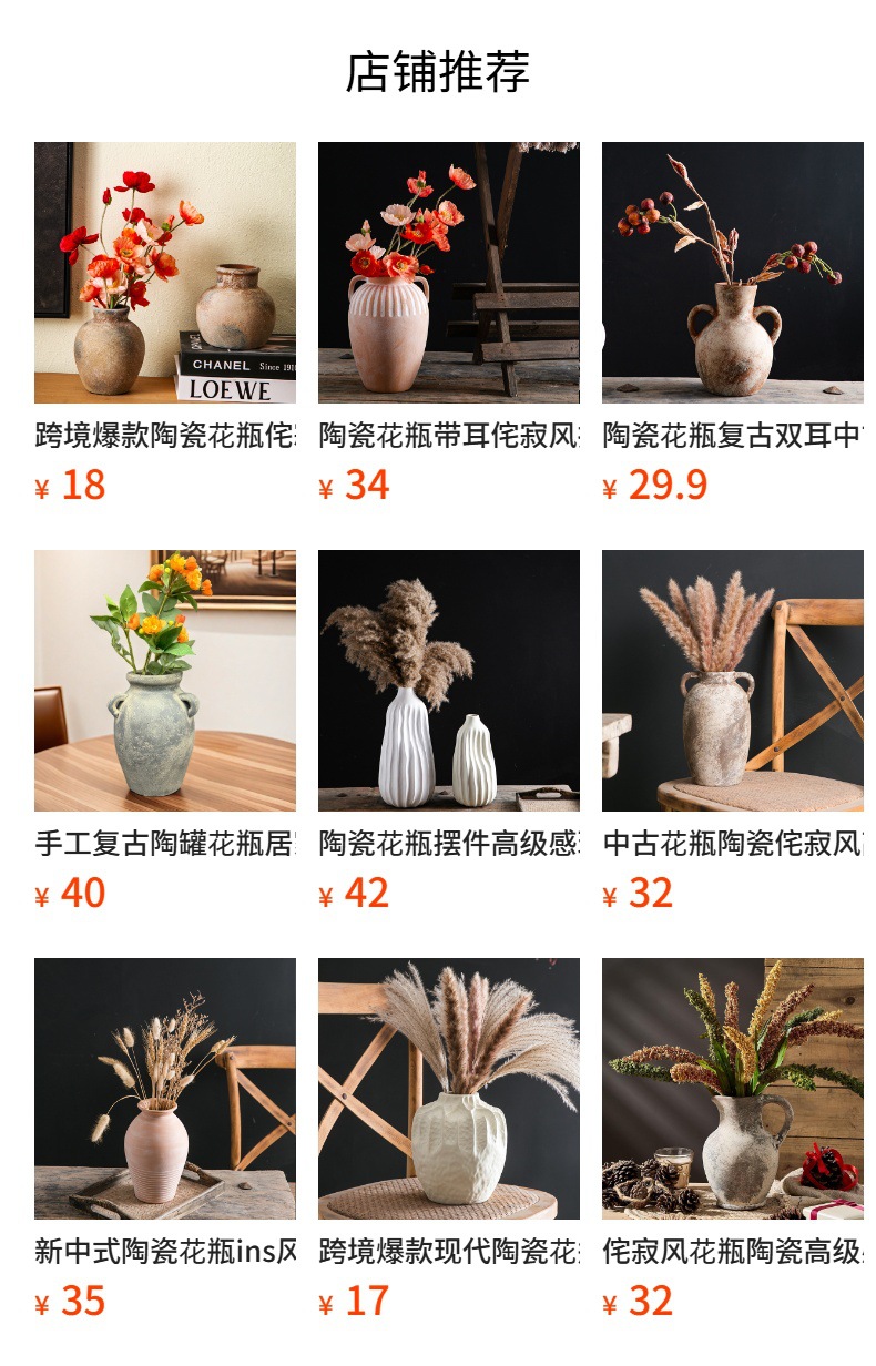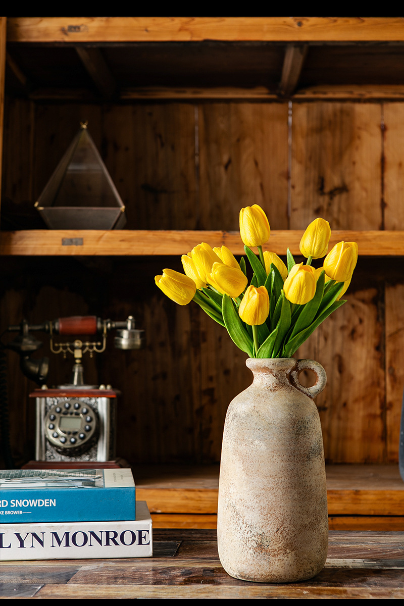 얇은 입 작은 꽃병, 복고풍 세라믹 꽃병, 와비사비 일반 도자기 장식품, 거실 꽃꽂이, 간단한 가정 장식 꽃 용기스토어 가기