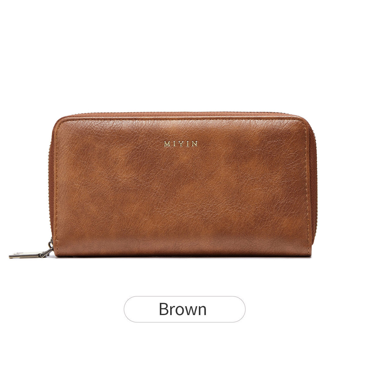 跨境新款RFID防磁女士钱包柔软油蜡皮手拿包欧美复古拉链长款钱包
