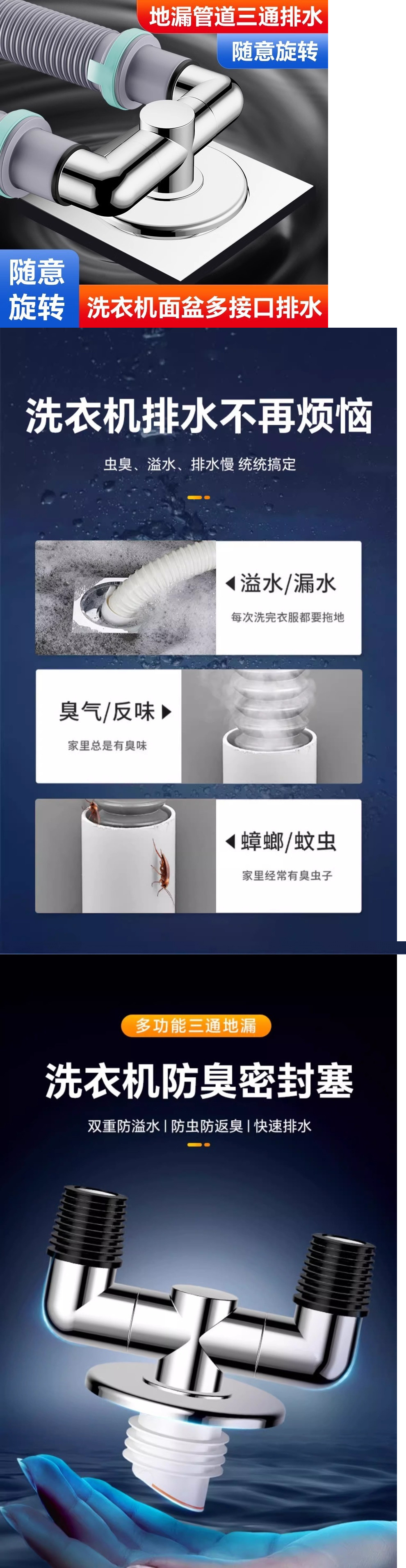 하수관, 세탁기 3방향 배수관, 바닥 배수구 특수 커넥터, 냄새 방지 오버플로 3방향 분배기 1/2스토어 가기