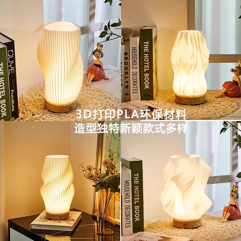 ✅ 국경 간 북유럽 간단한 3D 단단한 나무 장식 침실 눈 보호 센서 머리맡 램프 유럽 및 미국 소켓 테이블 램프 배치스토어 가기