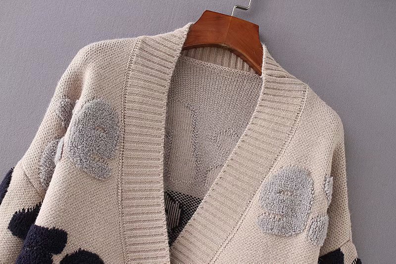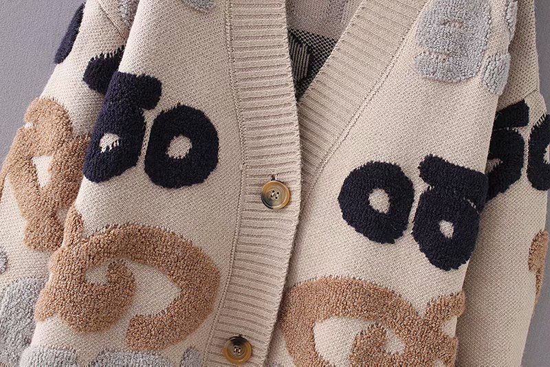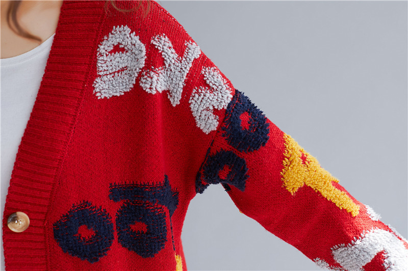 대외 무역 한국 스타일 느슨한 게으른 스타일 문자 V 넥 중간 길이 싱글 브레스트 니트 카디건 여성 가을, 겨울 여성 자켓스토어 가기