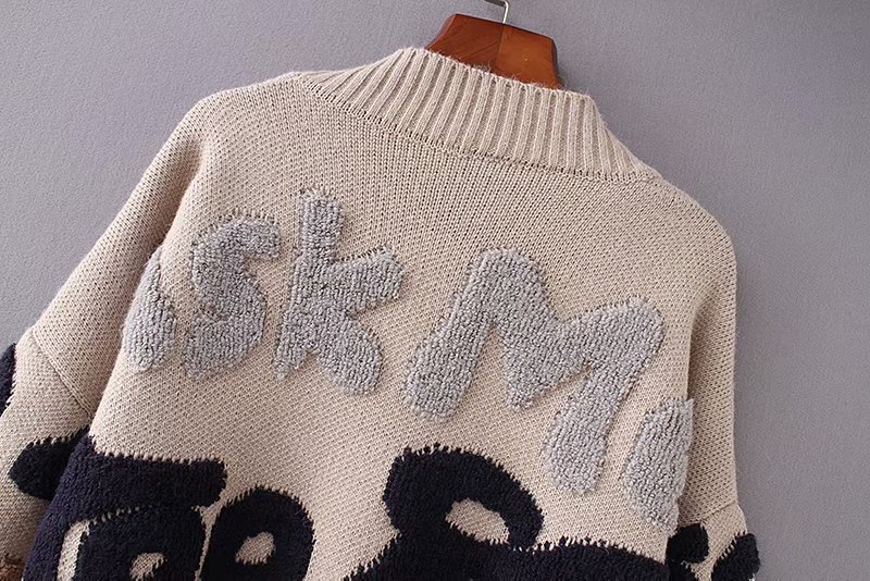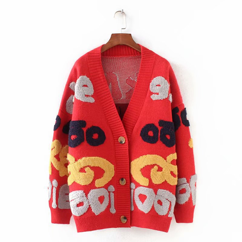 대외 무역 한국 스타일 느슨한 게으른 스타일 문자 V 넥 중간 길이 싱글 브레스트 니트 카디건 여성 가을, 겨울 여성 자켓