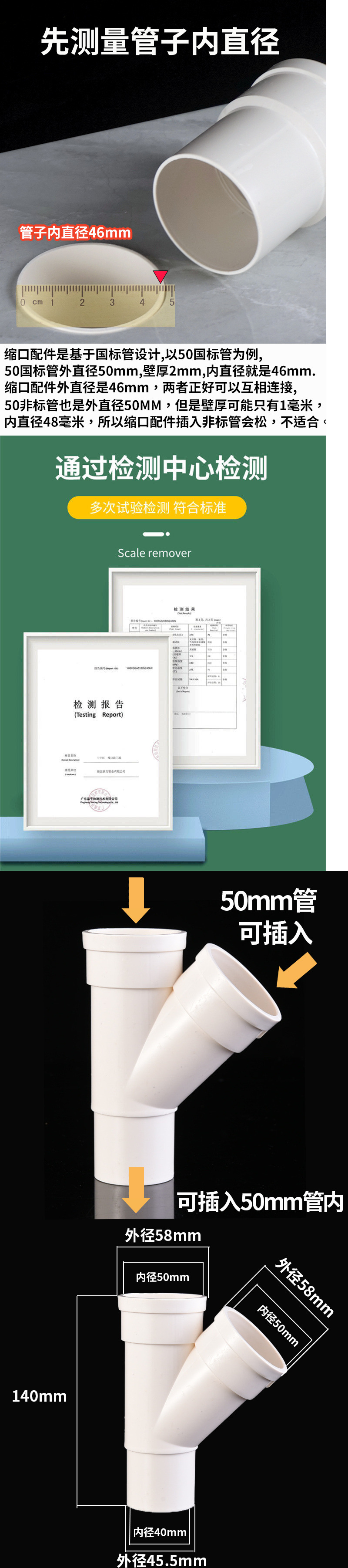 PVC 내부 및 외부 수축 경사 3방향 50 배수관 연장 조인트 내부 경사 3방향 하수관 액세서리스토어 가기