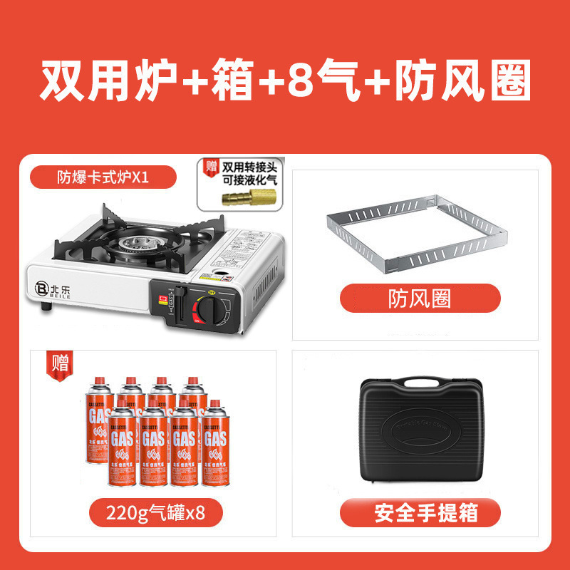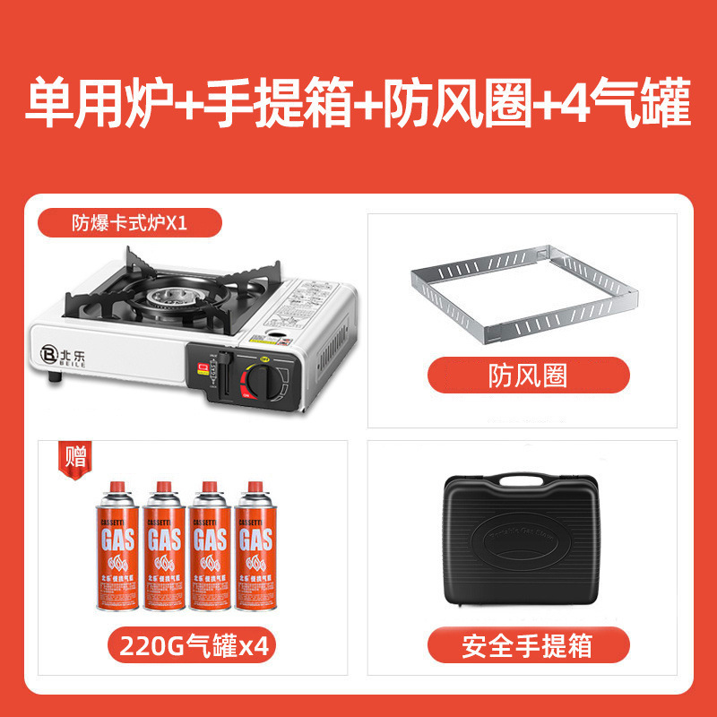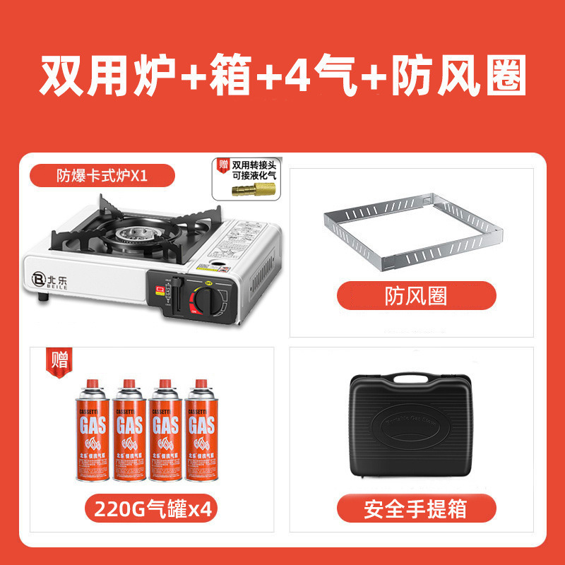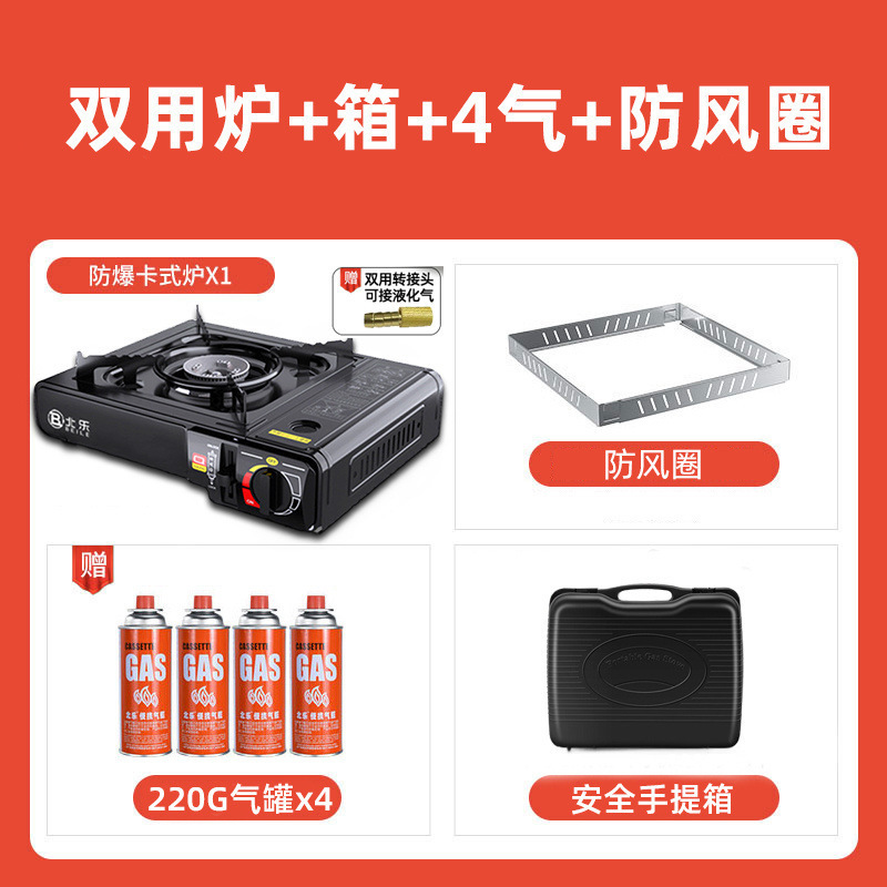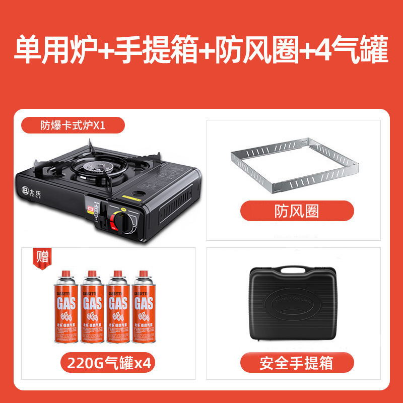 • 비즈니스 블랙 [두꺼운 철판/차분함/분위기] - 이중 방폭 베일로 스토브 + 박스 + 방풍 링 + 가스 4병