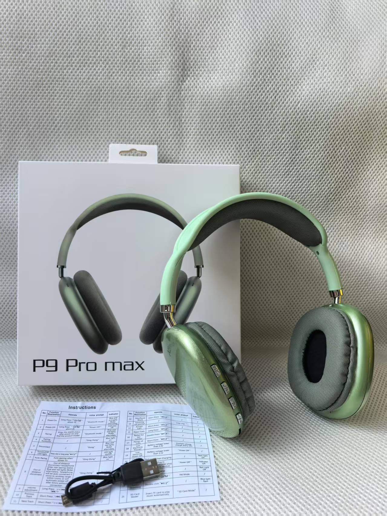 국경 간 인기 p9 pro max 헤드 장착형 블루투스 헤드셋 지능형 소음 감소 중저음 무선 스포츠 헤드셋 공장스토어 가기