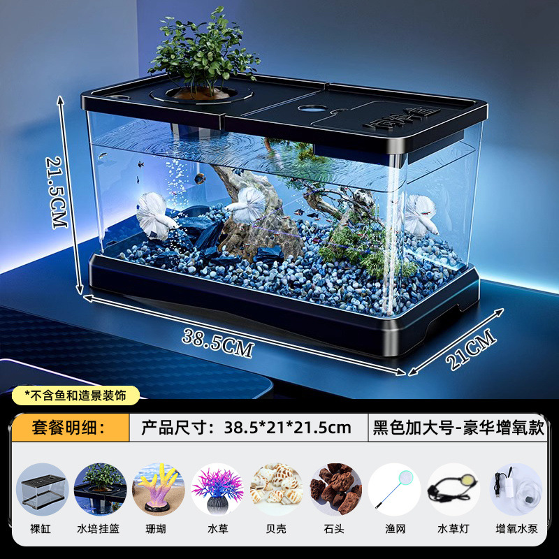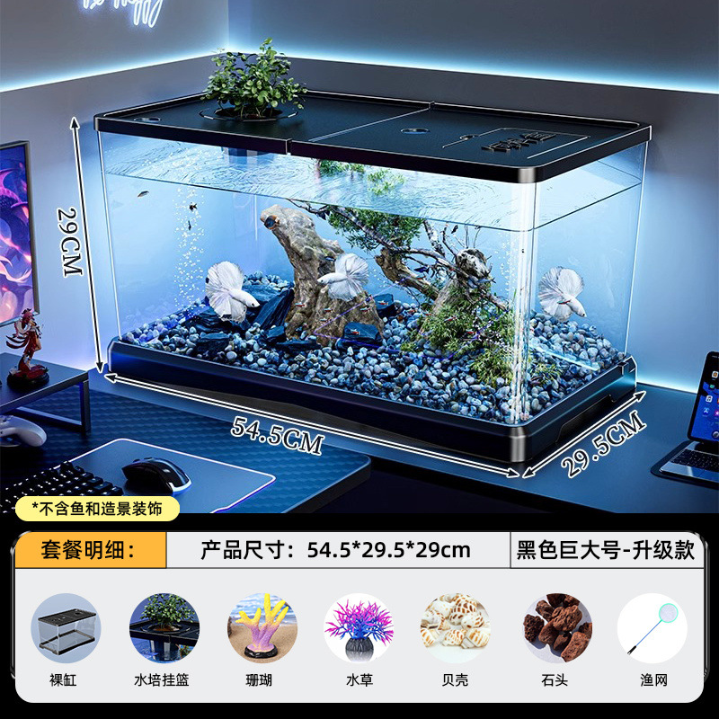 수조 2025 새로운 투명 플라스틱 금붕어 탱크 수족관 홈 거실 데스크탑 조명 생태 조경 수조스토어 가기