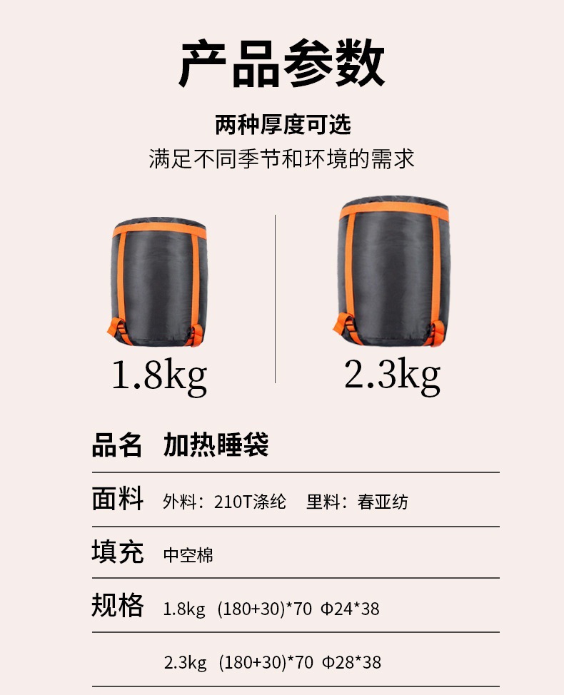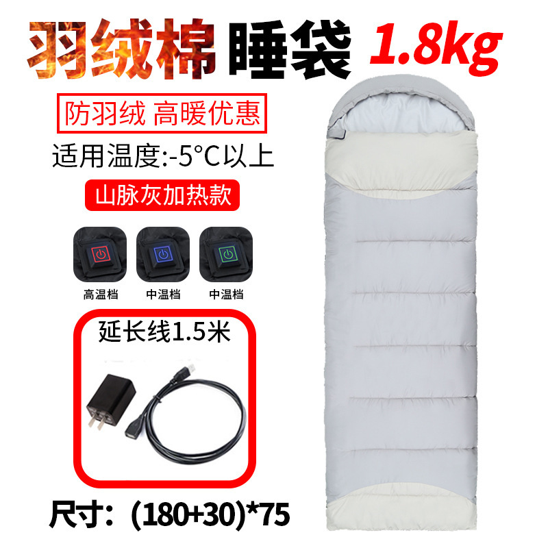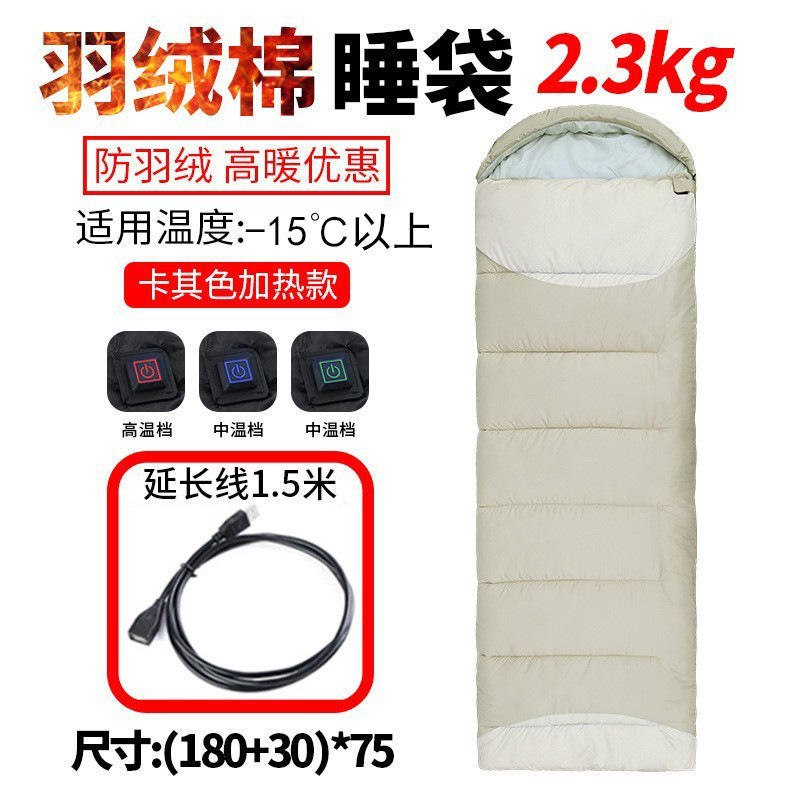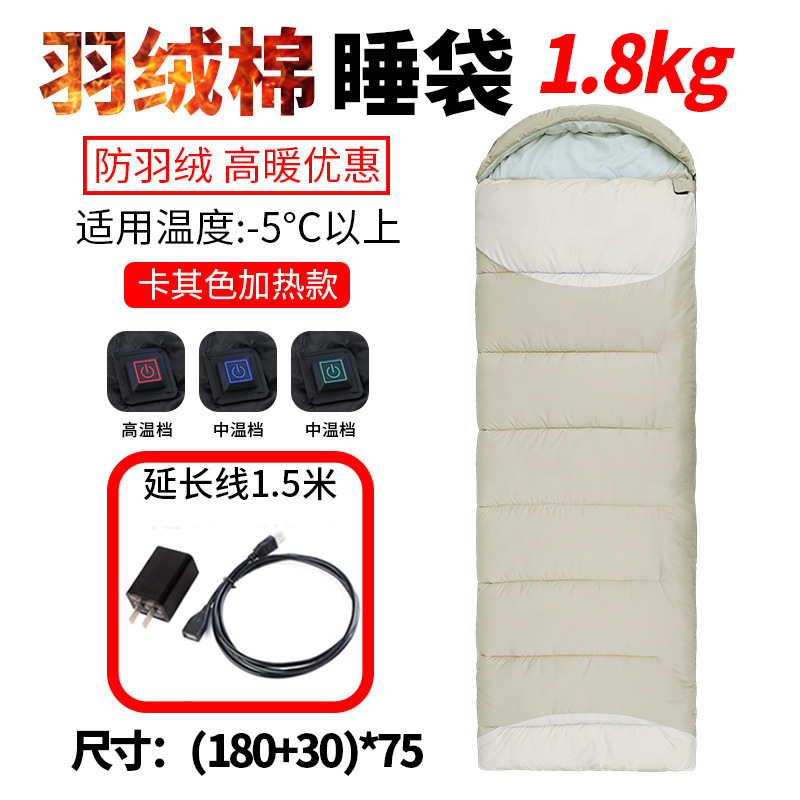 가열식 침낭, 야외 침낭, 다운 침낭, 접합 가능한 전기 가열식 USB 보조베터리, 가열식 침낭, 캠핑 침낭