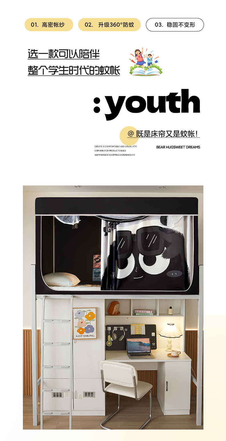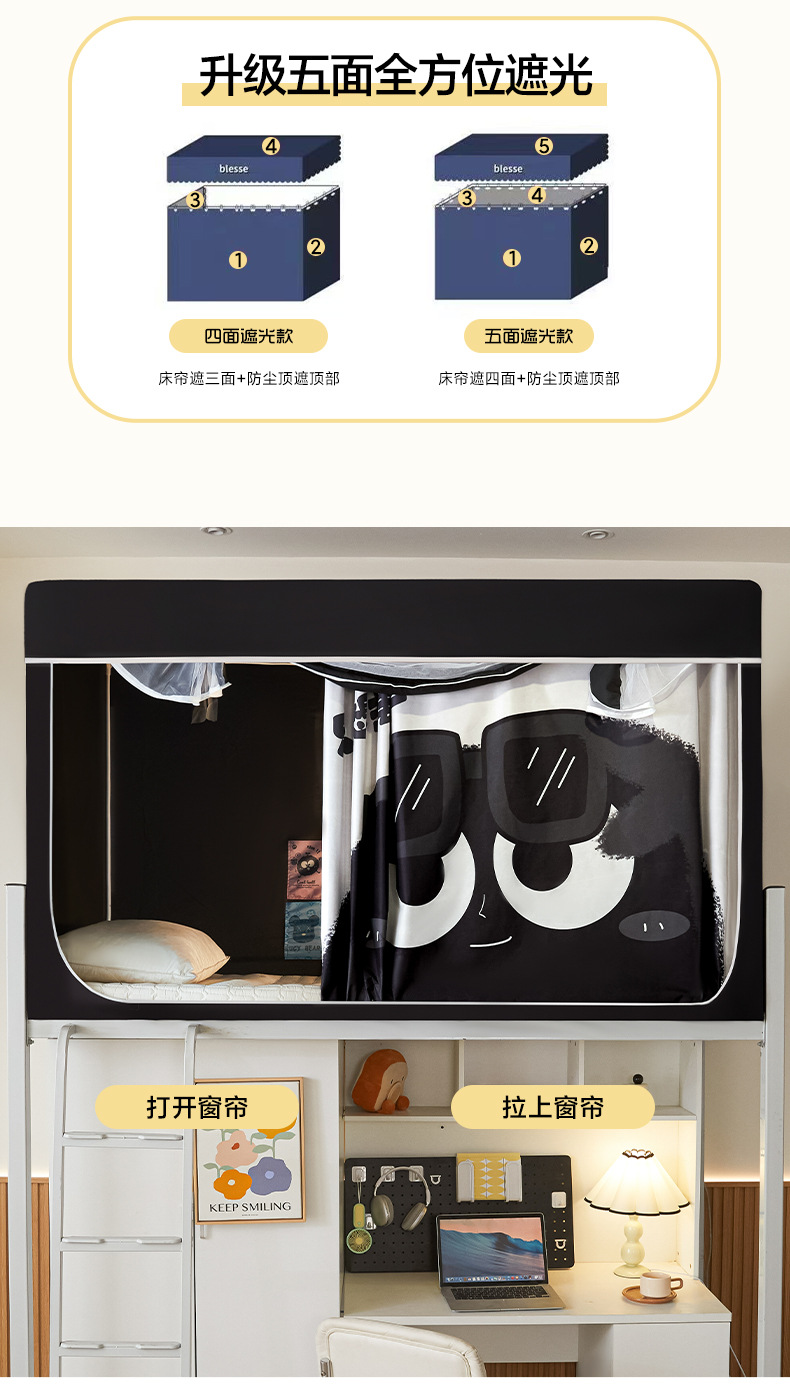 2025 새로운 5면 차광 및 방진 두꺼운 코팅 이층 침대 커튼 만화 학생 기숙사 모기장 3 도어스토어 가기