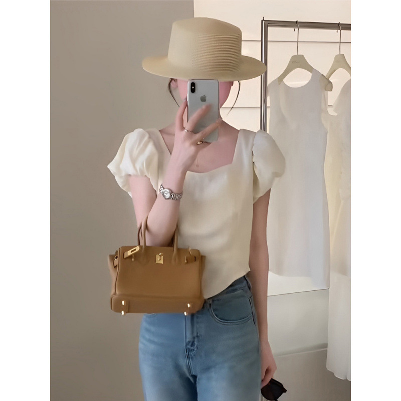 여성을위한 프렌치 시크 퍼프 슬리브 스퀘어 넥 쉬폰 셔츠 2025 여름 새로운 하이 엔드 디자인 틈새 탑스토어 가기
