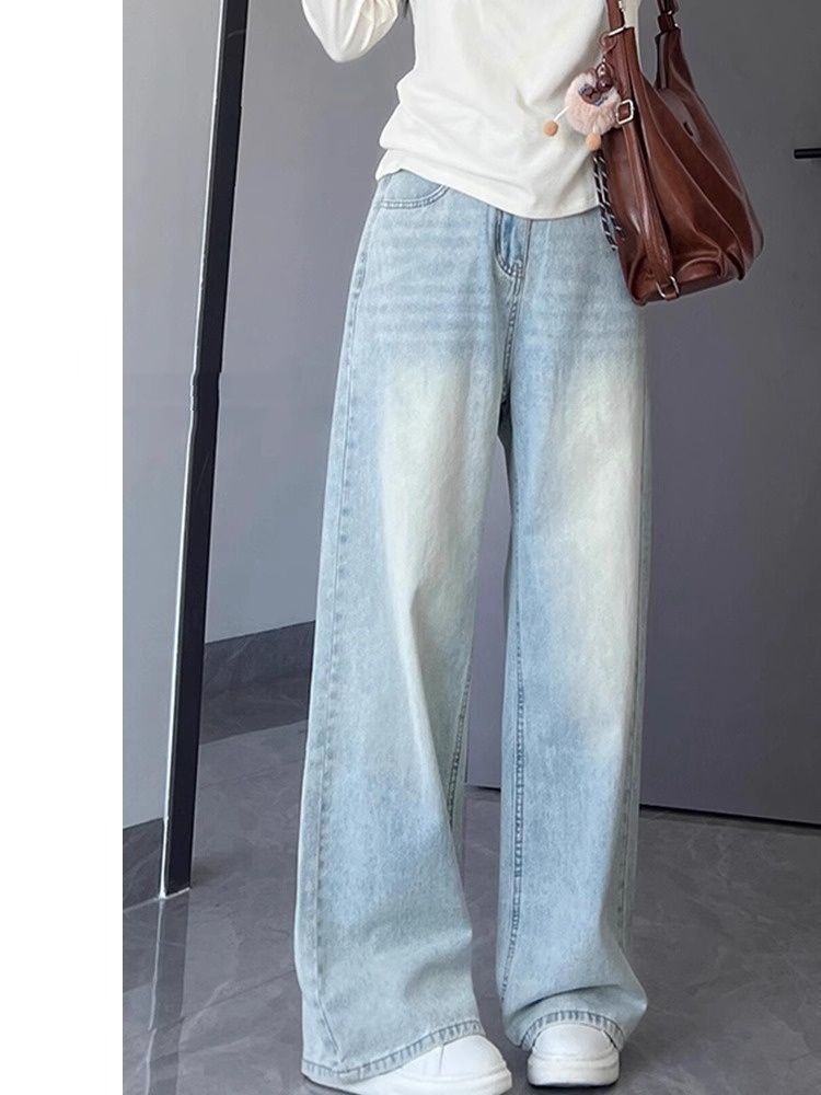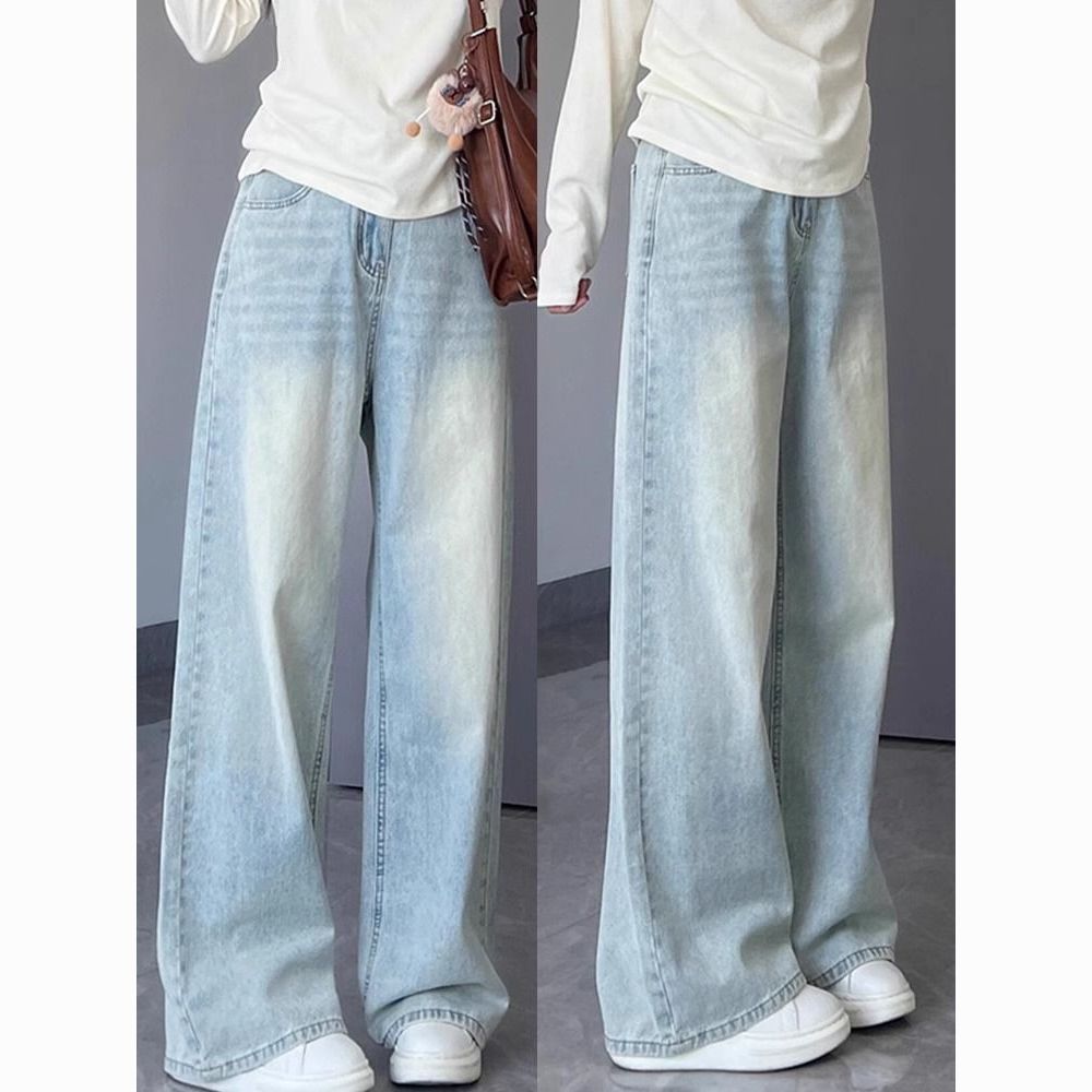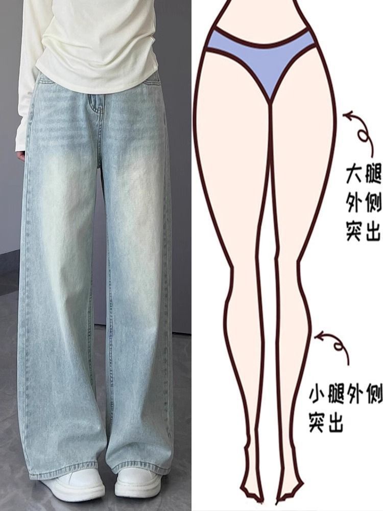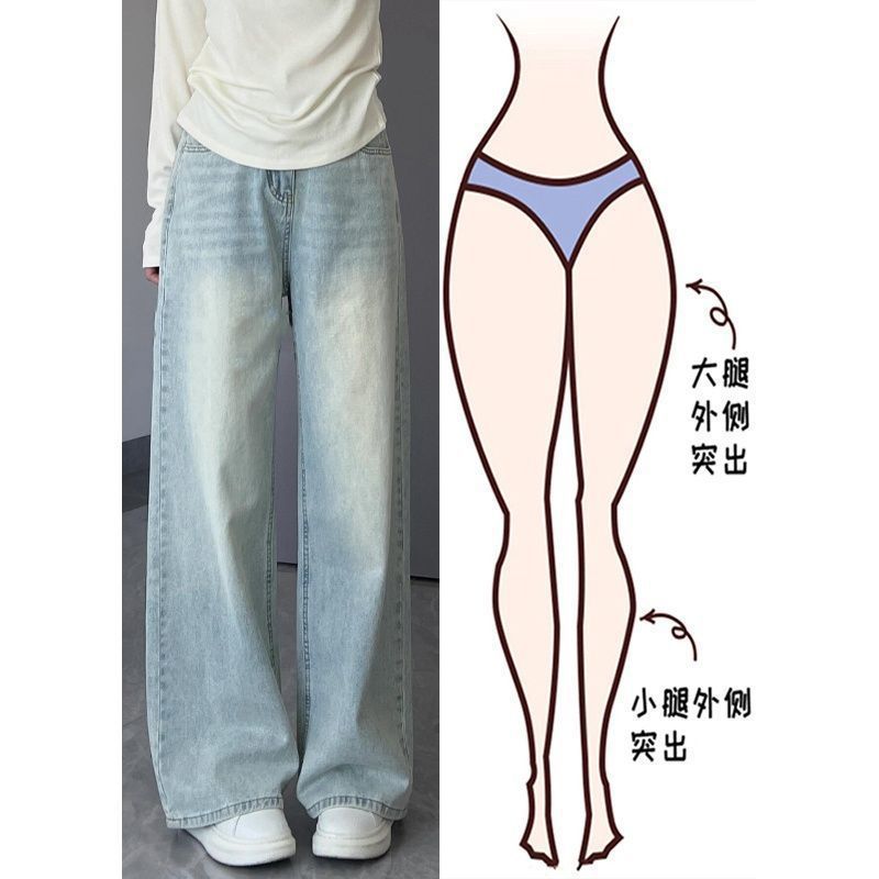 여성용 라이트 블루 스트레이트 청바지 봄 여름 신상 대형 드레이프 바지 하이 웨이스트 좁은 버전 루즈 슬리밍 와이드 레그 팬츠스토어 가기